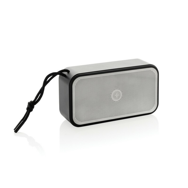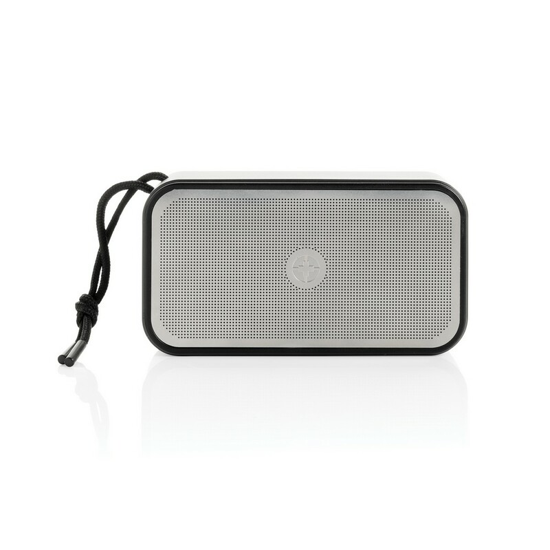 Głośnik bezprzewodowy 10W, BT 5.3, wodoodporny IPX4, posiada wbudowany głośnik niskotonowy, wbudowany akumulator o pojemności 1200 mAh pozwala na odtwarzanie do 5 godzin na średnim poziomie głośności, wykonany z aluminium z recyklingu, całkowita zawartość materiałów z recyklingu obliczona na podstawie wagi całkowitej przedmiotu: 40%