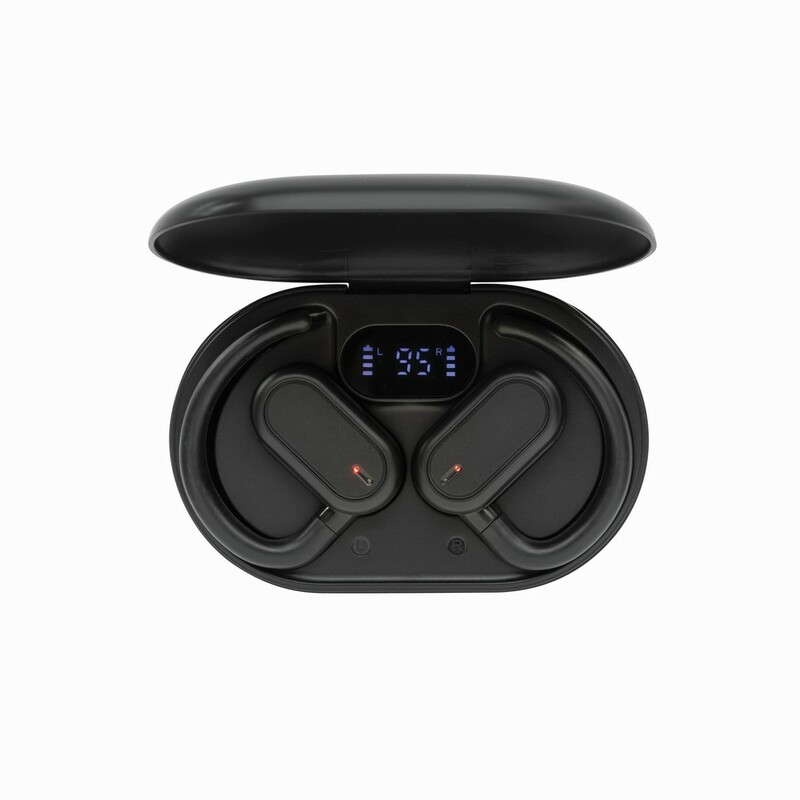 Słuchawki bezprzewodowe BT 5.3, wykonane z RABS z certyfikatem RCS (Recycled Claim Standard) produkt wyposażony w akumulator o pojemności 30 mAh, które można ponownie naładować w etui ładującym o pojemności 200 mAh w ciągu 1,5 godziny. Dzięki funkcji automatycznego parowania można je łatwo sparować z urządzeniem mobilnym, czas odtwarzania na średnim poziomie głośności wynosi ok. 5 godzin, zasięg działania do 10 metrów, z mikrofonem, w zestawie silikonowe końcówki douszne w 3 rozmiarach, kabel ładujący TPE z certyfikatem RCS, zapakowane w opakowanie FSC® mix kraft, produkt i akcesoria w 100% wolne od PVC