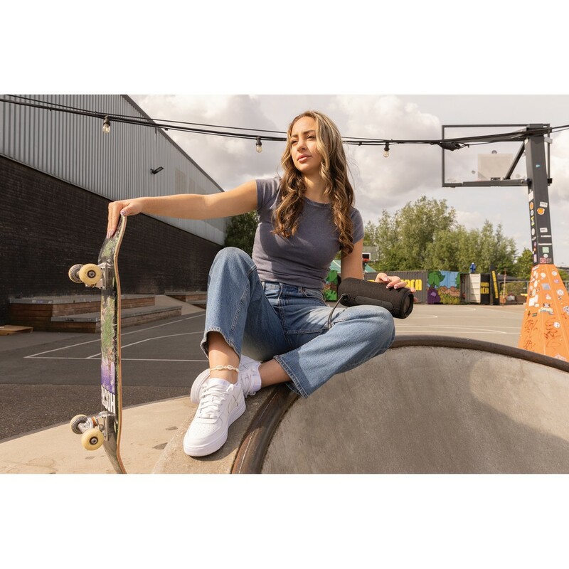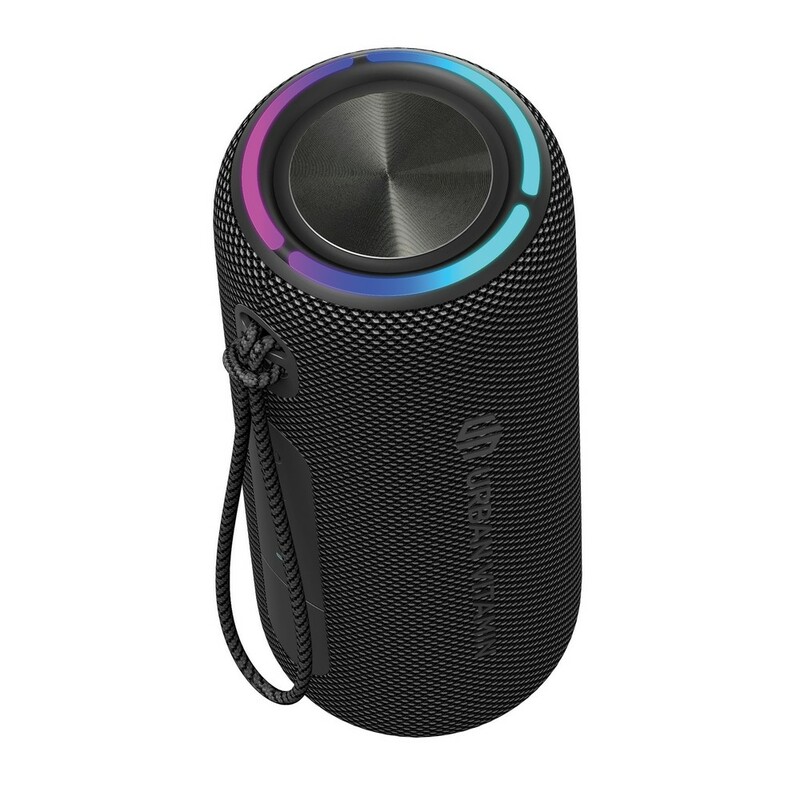 Głośnik bezprzewodowy 30 W, wodoodporny IPX7 (odporność do 1m na czas do 30 minut), uchwyt, 2 głośniki niskotonowe, możliwość sparowania dwóch głośników w celu uzyskania dźwięku stereo, do 8 godzin odtwarzania na jednym ładowaniu, wykonany z ABS i PET z recyklingu z certyfikatem RCS, całkowita zawartość materiałów obliczona na podstawie wagi całkowitej przedmiotu: 36%, ślad węglowy produktu: 0 kg CO2