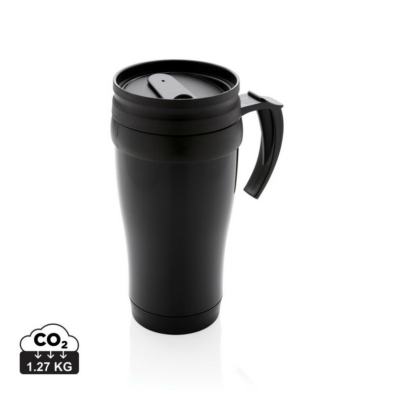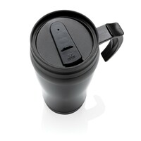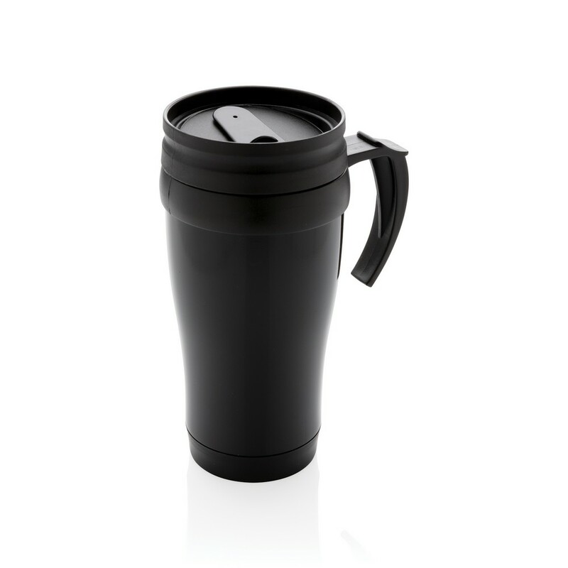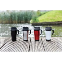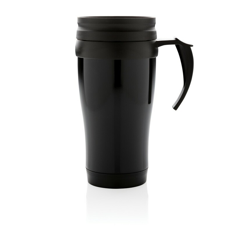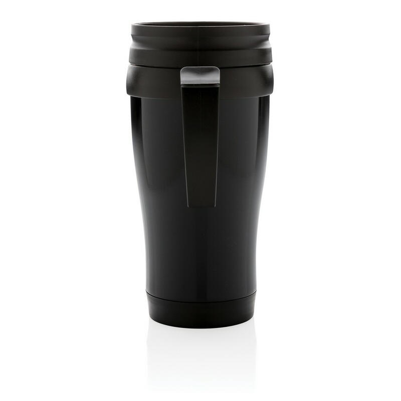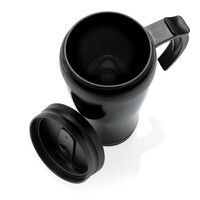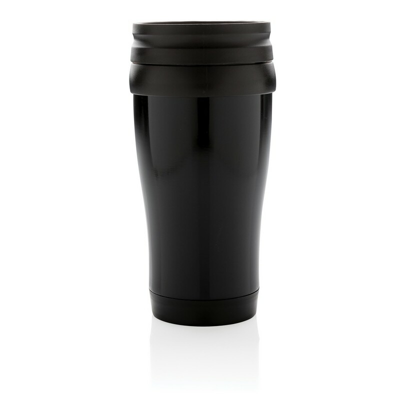 Kubek termiczny 350 ml, stal nierdzewna na zewnątrz, wnętrze z PP, czarny spód i wieczko, klasa termiczna: 1