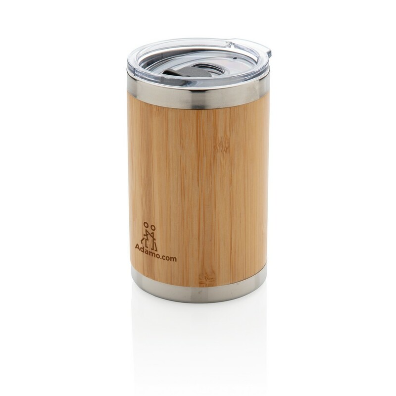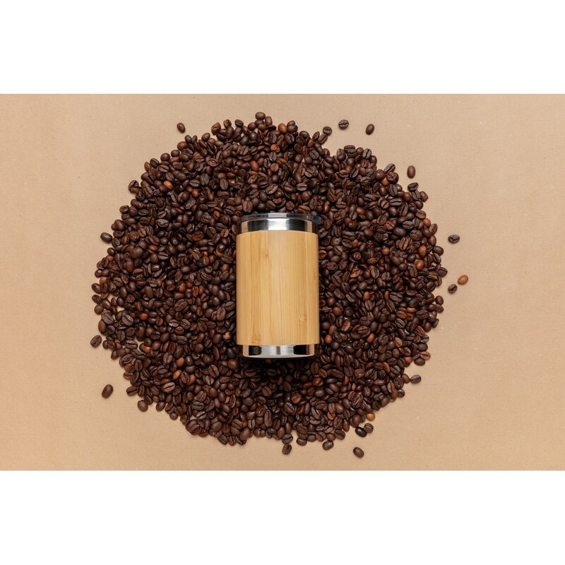 Bambusowy kubek termiczny 270 ml, wnętrze ze stali nierdzewnej 304 odpornej na rdzę i styczność z żywnością, powłoka z organicznego bambusa na zewnątrz, pasuje do większości ekspresów do kawy, utrzymuje temperaturę napojów gorących do 4 godzin oraz zimnych do 6 godzin