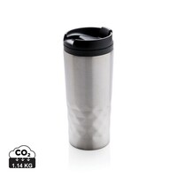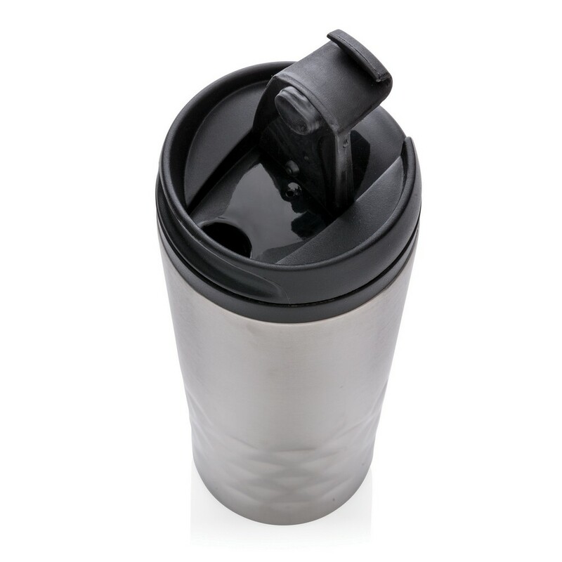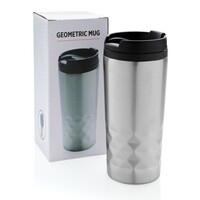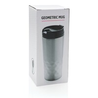 Geometryczny kubek termiczny 300 ml, plastikowe wnętrze, stal nierdzewna na zewnątrz, wyłącznie mycie ręczne, utrzymuje temperaturę napojów gorących do 4 godzin