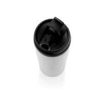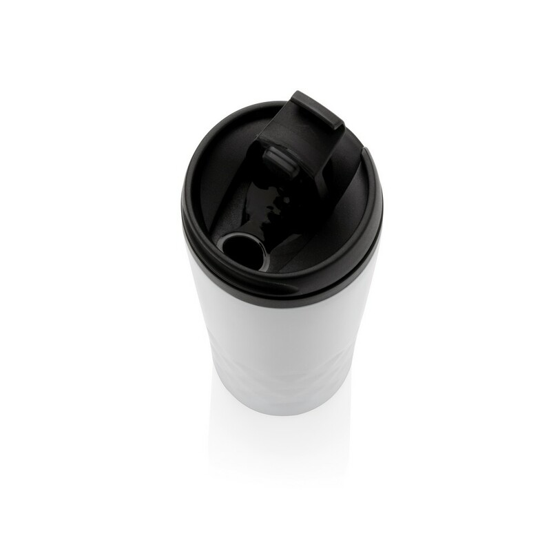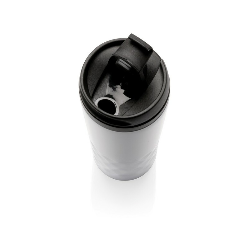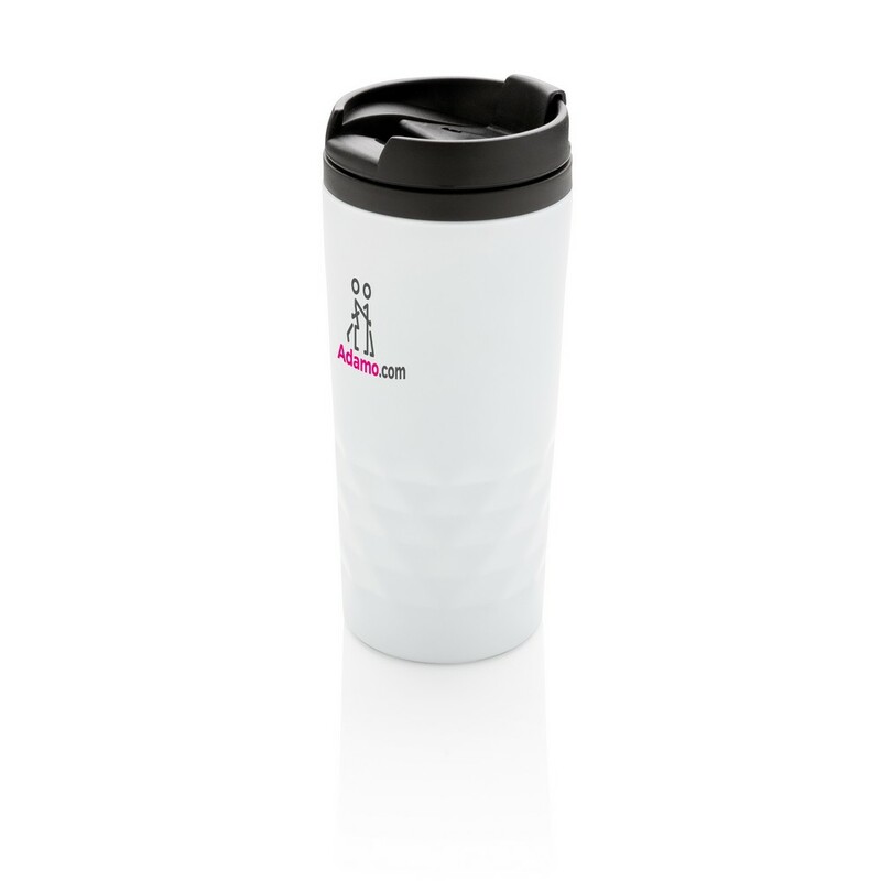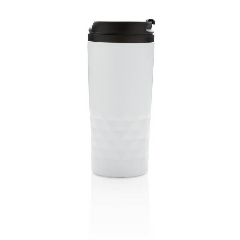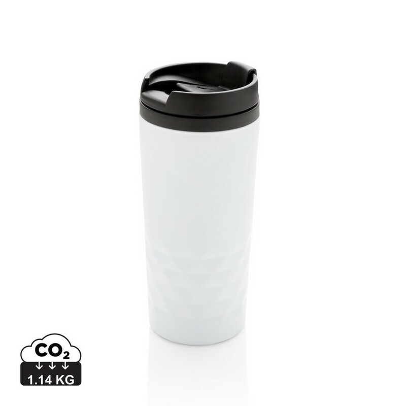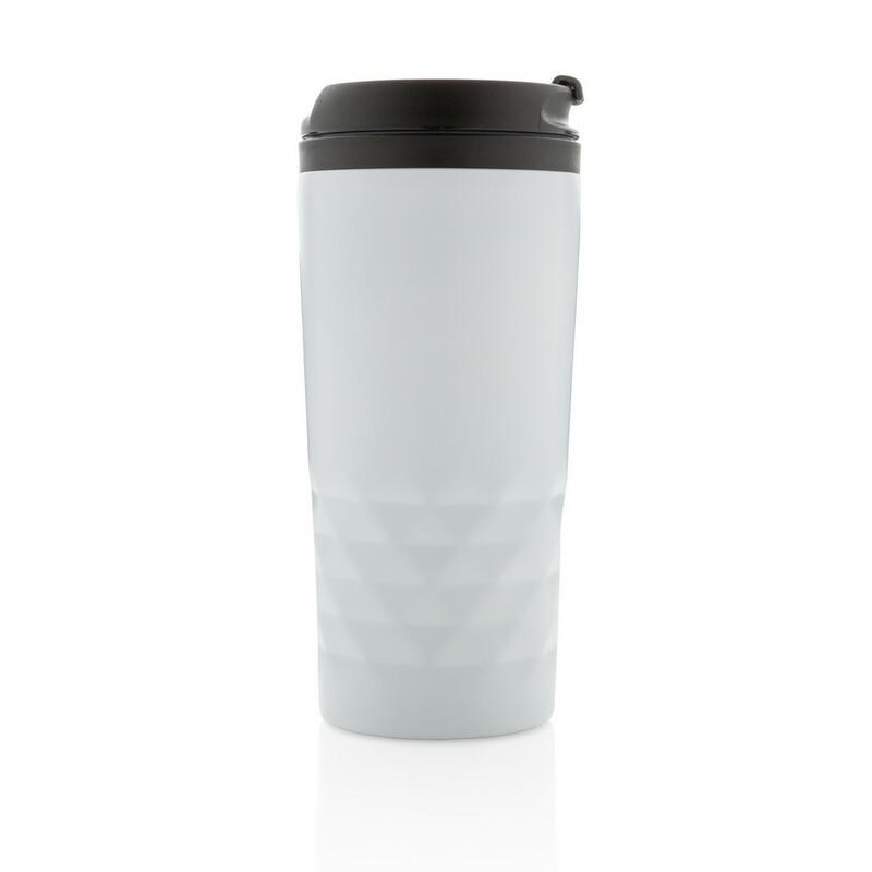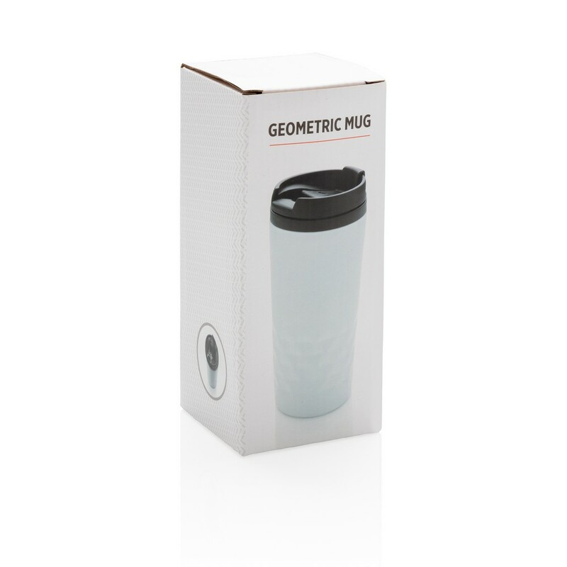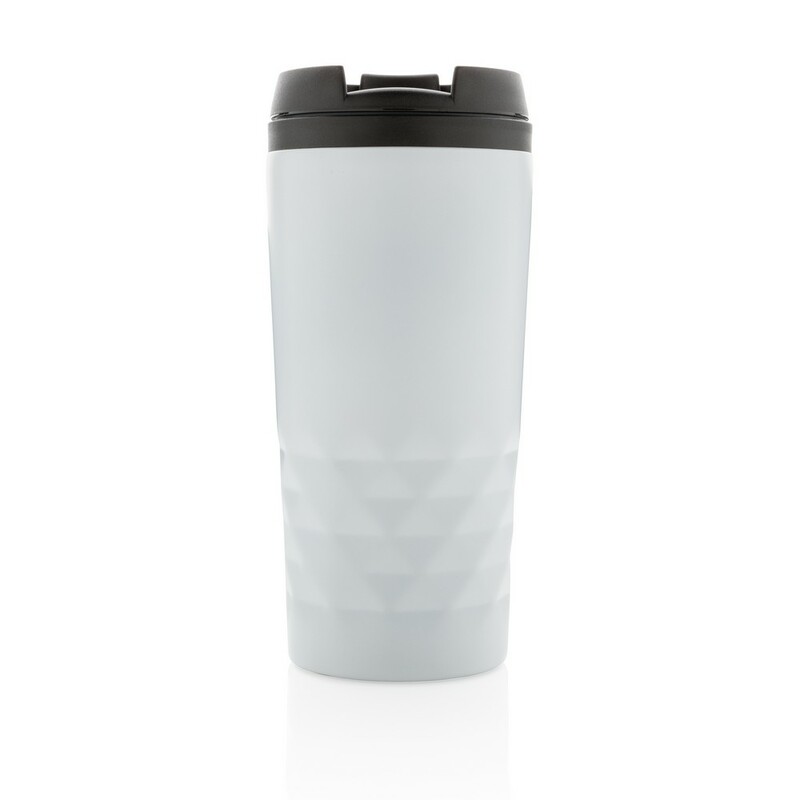 Geometryczny kubek termiczny 300 ml, plastikowe wnętrze, stal nierdzewna na zewnątrz, wyłącznie mycie ręczne, utrzymuje temperaturę napojów gorących do 4 godzin
