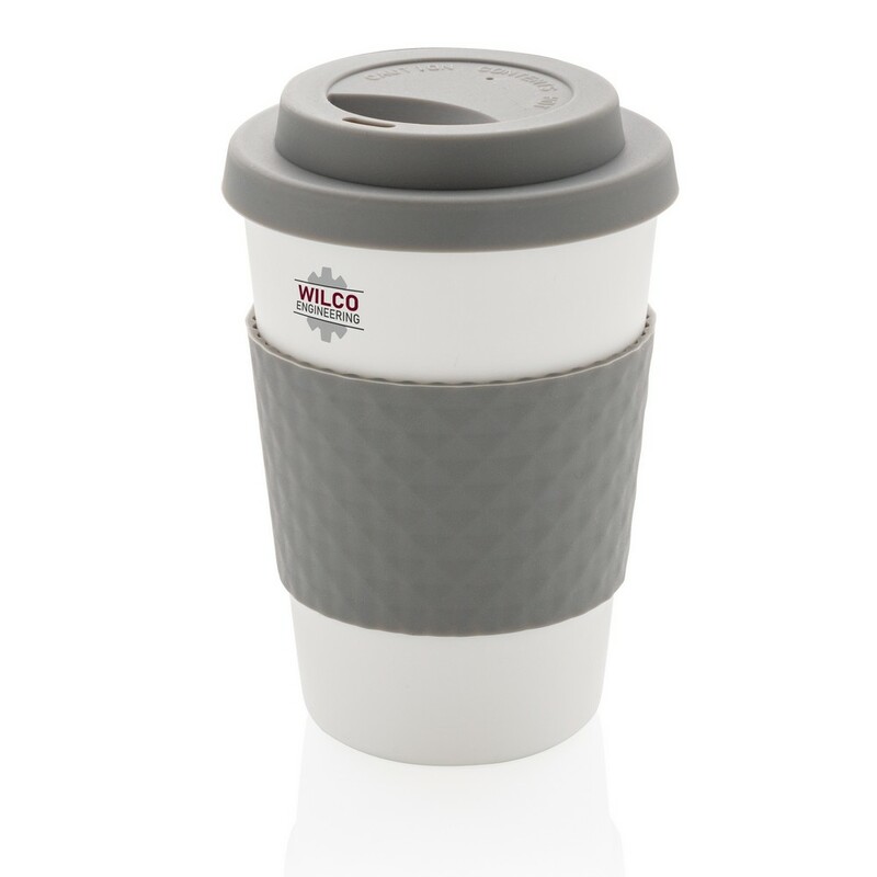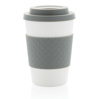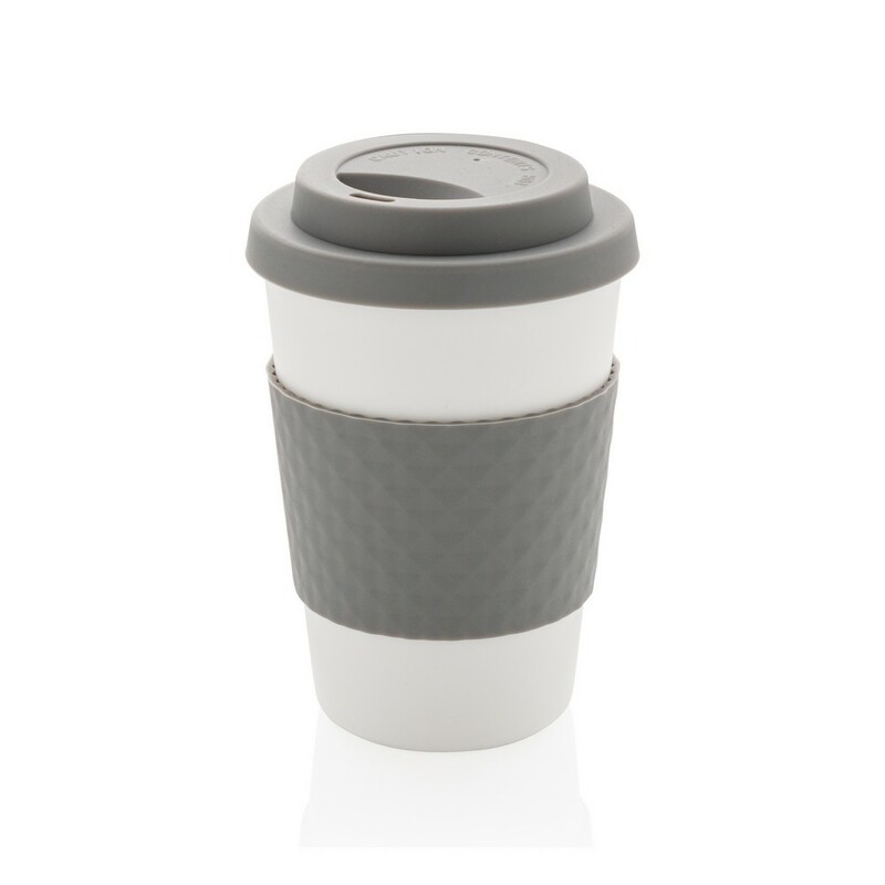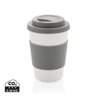 Kubek podróżny 270 ml, lekki, trwały i wielokrotnego użytku, wykonany z nadającego się w 100% do recyklingu materiału PP, silikonowe wieczko i uchwyt, odporny na temperaturę do 100 stopni Celsjusza, kubek można myć w zmywarce i używać w kuchence mikrofalowej, pasuje do większości ekspresów do kawy, ślad węglowy produktu: 0,39 kg CO2