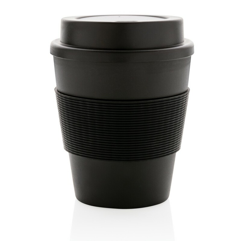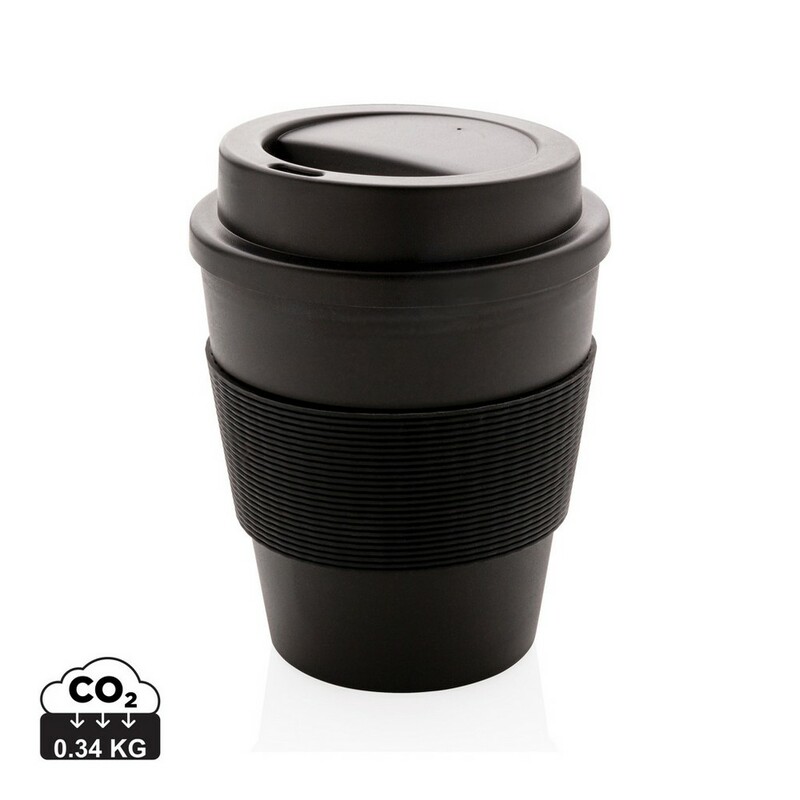 Kubek podróżny 350 ml, lekki, trwały i wielokrotnego użytku, wykonany z nadającego się w 100% do recyklingu materiału PP, silikonowy uchwyt, zakręcane wieczko, odporny na temperaturę do 100 stopni Celsjusza, kubek można myć w zmywarce i używać w kuchence mikrofalowej, ślad węglowy produktu: 0,34 kg CO2