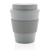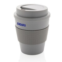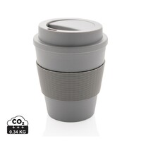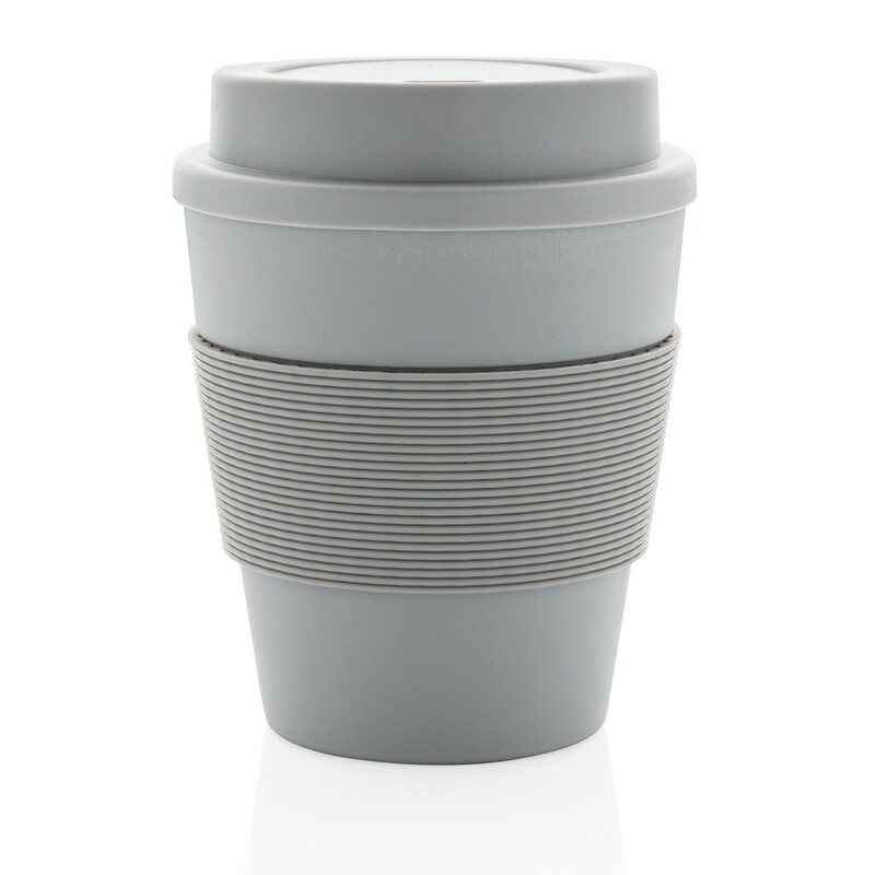 Kubek podróżny 350 ml, lekki, trwały i wielokrotnego użytku, wykonany z nadającego się w 100% do recyklingu materiału PP, silikonowy uchwyt, zakręcane wieczko, odporny na temperaturę do 100 stopni Celsjusza, kubek można myć w zmywarce i używać w kuchence mikrofalowej, ślad węglowy produktu: 0,34 kg CO2