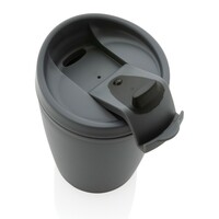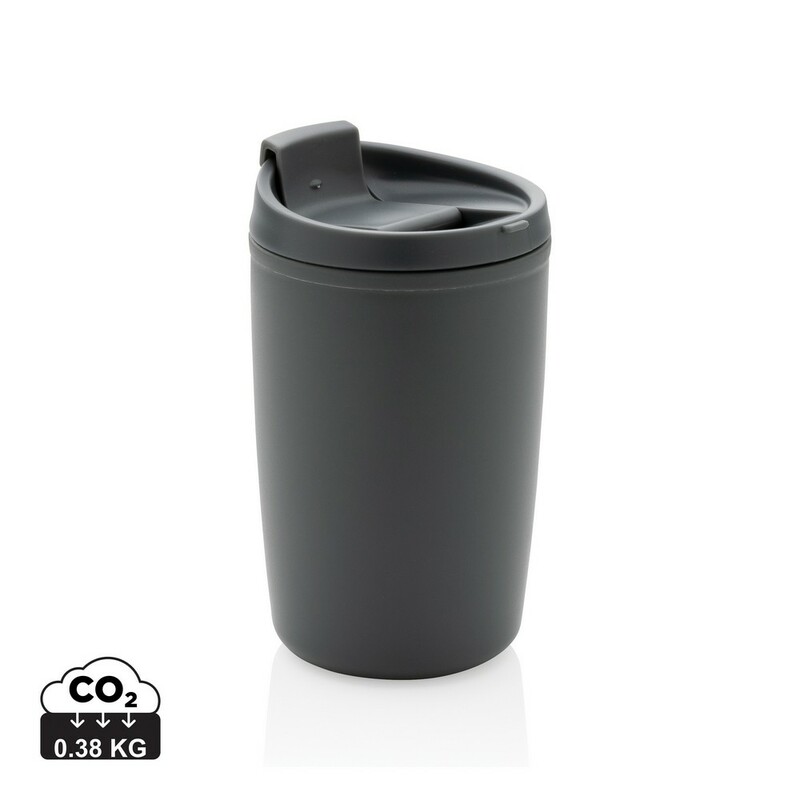 Kubek podróżny 300 ml, nie wymaga obsługi oburącz, wykonany z PP z recyklingu z certyfikatem GRS (Global Recycled Standard) który gwarantuje, że wykorzystane materiały pochodzą z recyklingu, całkowita zawartość materiału z recyklingu obliczona w oparciu o wagę całkowitą przedmiotu: 96%, można myć w zmywarce i używać w kuchence mikrofalowej, w pudełku z papieru kraftowego z certyfikatem FSC® (Forest Stewardship Council), ślad węglowy produktu: 0,38 kg CO2