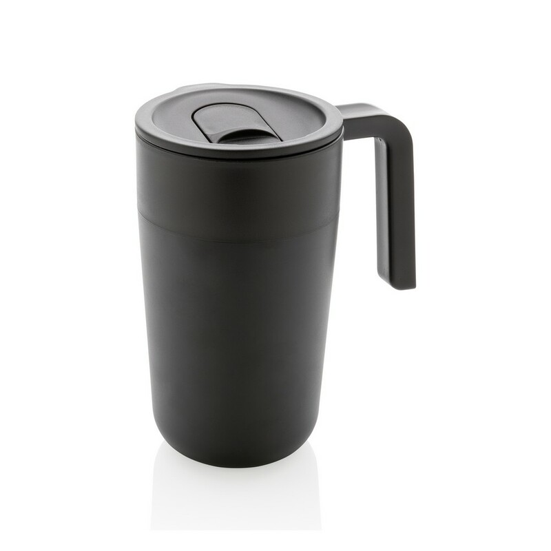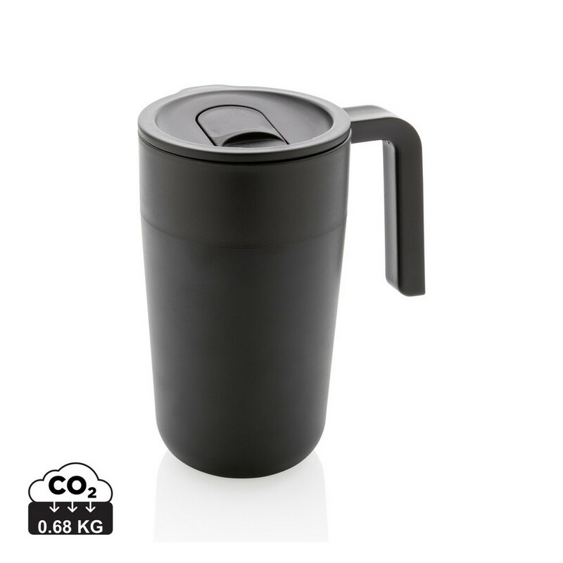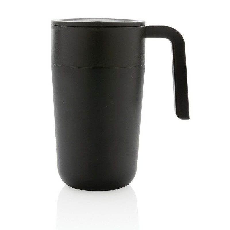 Kubek termiczny 480 ml z uchwytem, szczelne wieczko, wykonany z PP z recyklingu i stali nierdzewnej z recyklingu z certyfikatem GRS (Global Recycled Standard) który gwarantuje, że wykorzystane materiały pochodzą z recyklingu, całkowita zawartość materiału z recyklingu obliczona w oparciu o wagę całkowitą przedmiotu: 60%, w pudełku z papieru kraftowego z certyfikatem FSC® (Forest Stewardship Council), utrzymuje temperaturę napojów gorących do 4 godzin