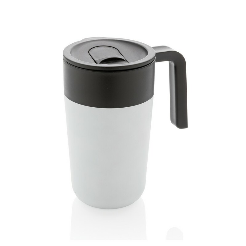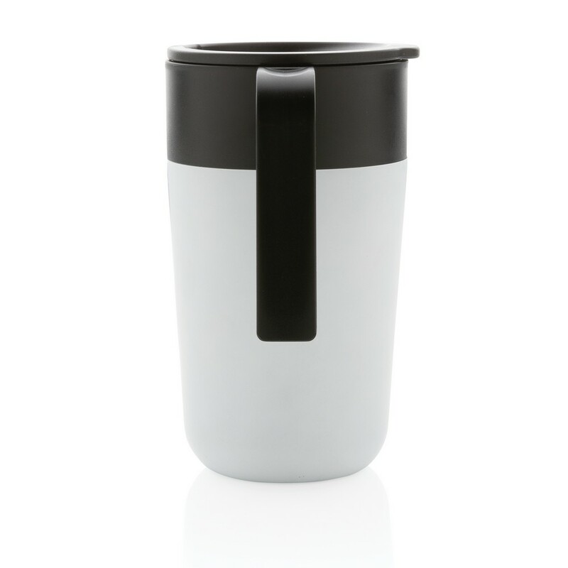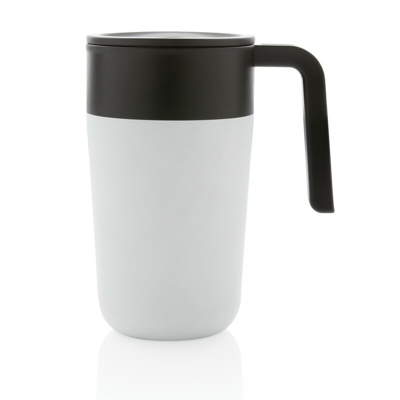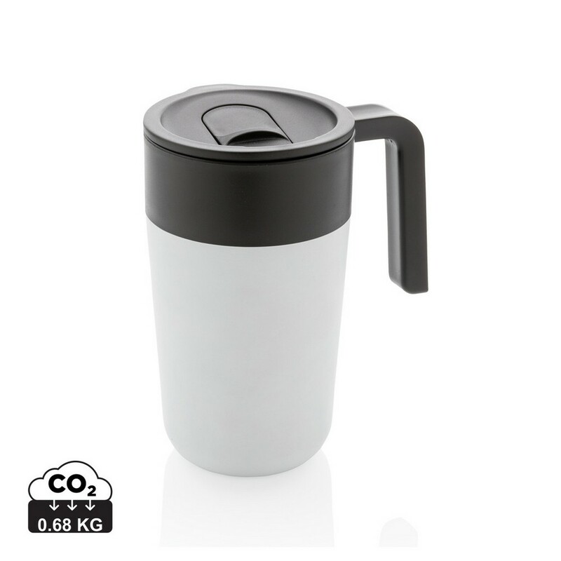 Kubek termiczny 480 ml z uchwytem, szczelne wieczko, wykonany z PP z recyklingu i stali nierdzewnej z recyklingu z certyfikatem GRS (Global Recycled Standard) który gwarantuje, że wykorzystane materiały pochodzą z recyklingu, całkowita zawartość materiału z recyklingu obliczona w oparciu o wagę całkowitą przedmiotu: 60%, w pudełku z papieru kraftowego z certyfikatem FSC® (Forest Stewardship Council), utrzymuje temperaturę napojów gorących do 4 godzin
