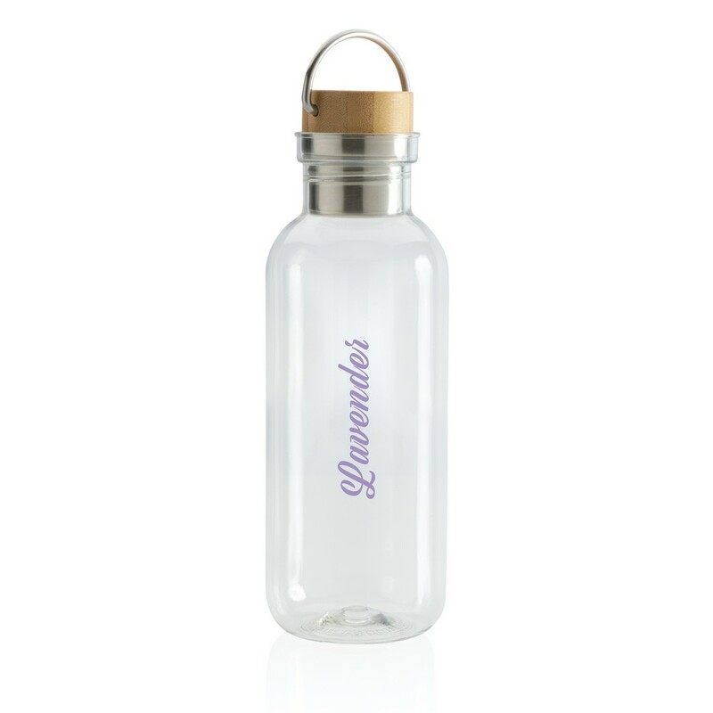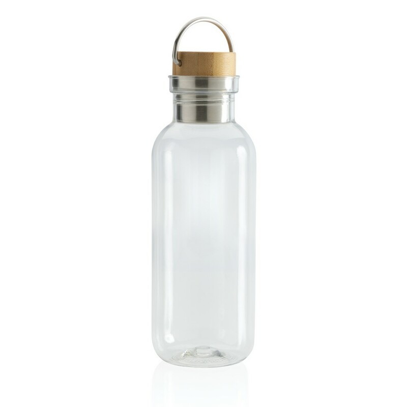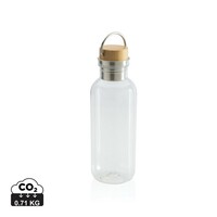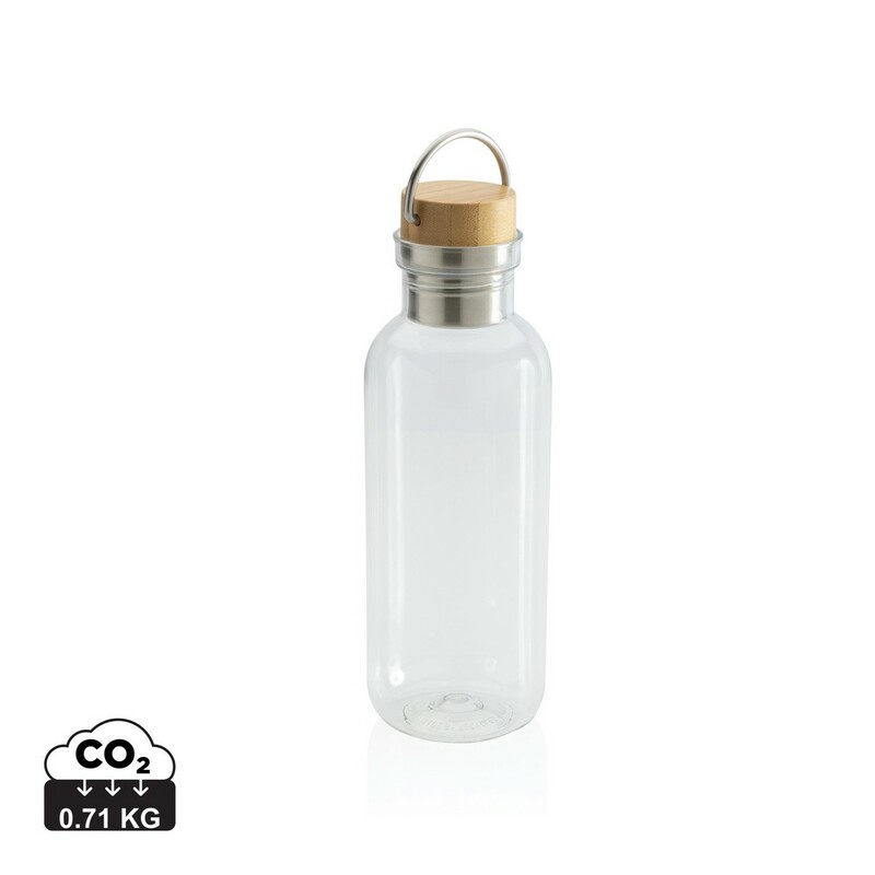 Butelka sportowa 680 ml z uchwytem, korpus wykonany z RPET z certyfikatem RCS który gwarantuje, że wykorzystane materiały pochodzą z recyklingu, zakrętka wykonana z bambusa z certyfikatem FSC® (Forest Stewardship Council), całkowita zawartość materiału z recyklingu obliczona w oparciu o wagę całkowitą przedmiotu: 56%, wyłącznie do zimnych napojów, nie należy myć w zmywarce, w pudełku z papieru kraftowego z certyfikatem FSC®