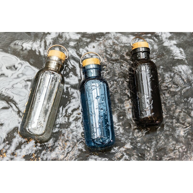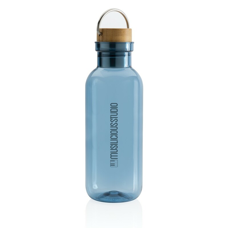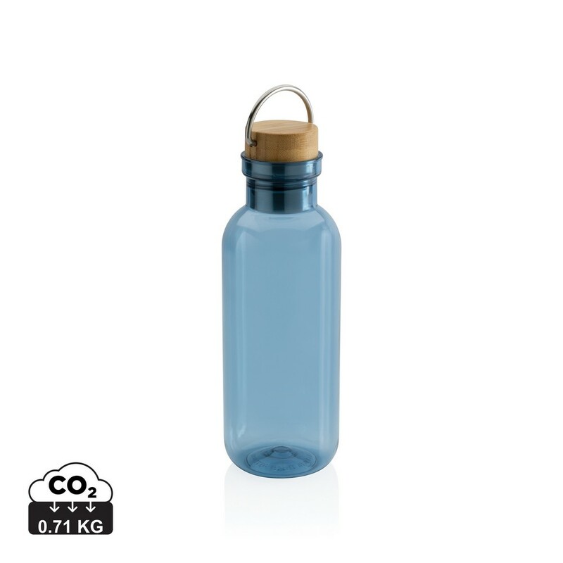 Butelka sportowa 680 ml z uchwytem, korpus wykonany z RPET z certyfikatem RCS który gwarantuje, że wykorzystane materiały pochodzą z recyklingu, zakrętka wykonana z bambusa z certyfikatem FSC® (Forest Stewardship Council), całkowita zawartość materiału z recyklingu obliczona w oparciu o wagę całkowitą przedmiotu: 56%, wyłącznie do zimnych napojów, nie należy myć w zmywarce, w pudełku z papieru kraftowego z certyfikatem FSC®