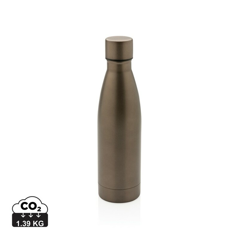 Butelka termiczna 500 ml, podwójne ścianki z próżnią pomiędzy, wykonana ze stali nierdzewnej z recyklingu z certyfikatem RCS (Recycled Claim Standard) który gwarantuje, że wykorzystane materiały pochodzą z recyklingu, całkowita zawartość materiału z recyklingu obliczona w oparciu o wagę całkowitą przedmiotu: 93%, pasuje do większości uchwytów samochodowych, w pudełku z papieru kraftowego z certyfikatem FSC® (Forest Stewardship Council), utrzymuje temperaturę napojów gorących do 20 godzin oraz zimnych do 15 godzin