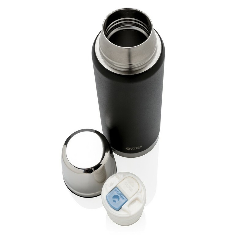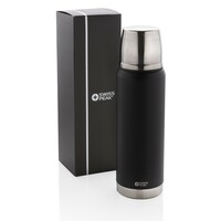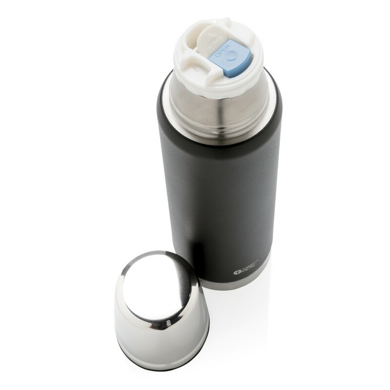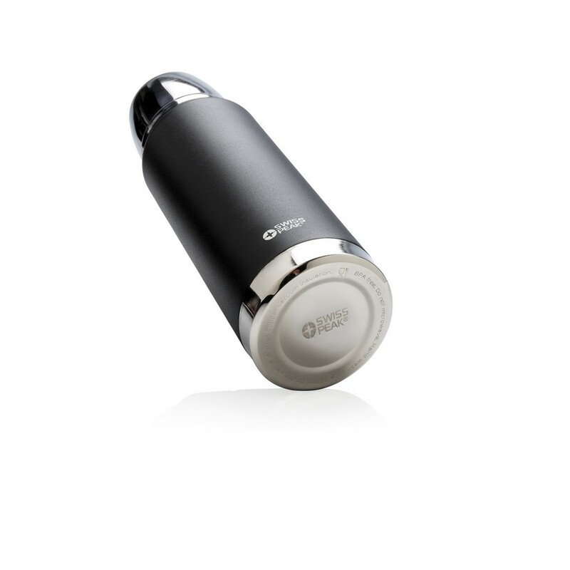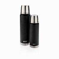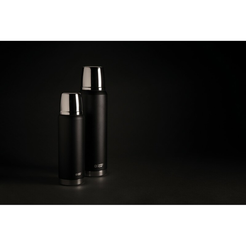 Termos 500 ml z izolacją próżniową, podwójne ścianki, wnętrze ze stali nierdzewnej 18/8, powlekany proszkowo czarny kolor cechujący się niezwykłą trwałością i odpornością na wyblaknięcie czy popękanie, ściana wewnętrzna pokryta miedzią o wysokim poziomie przewodnictwa, wyłącznie mycie ręczne, utrzymuje temperaturę napojów gorących do 20 godzin oraz zimnych do 24 godzin +leakproof