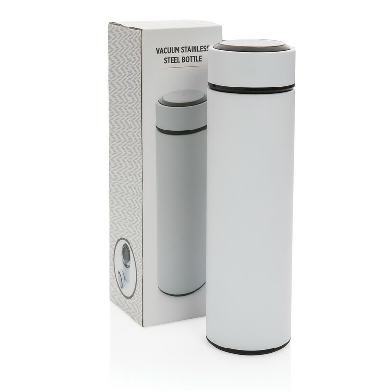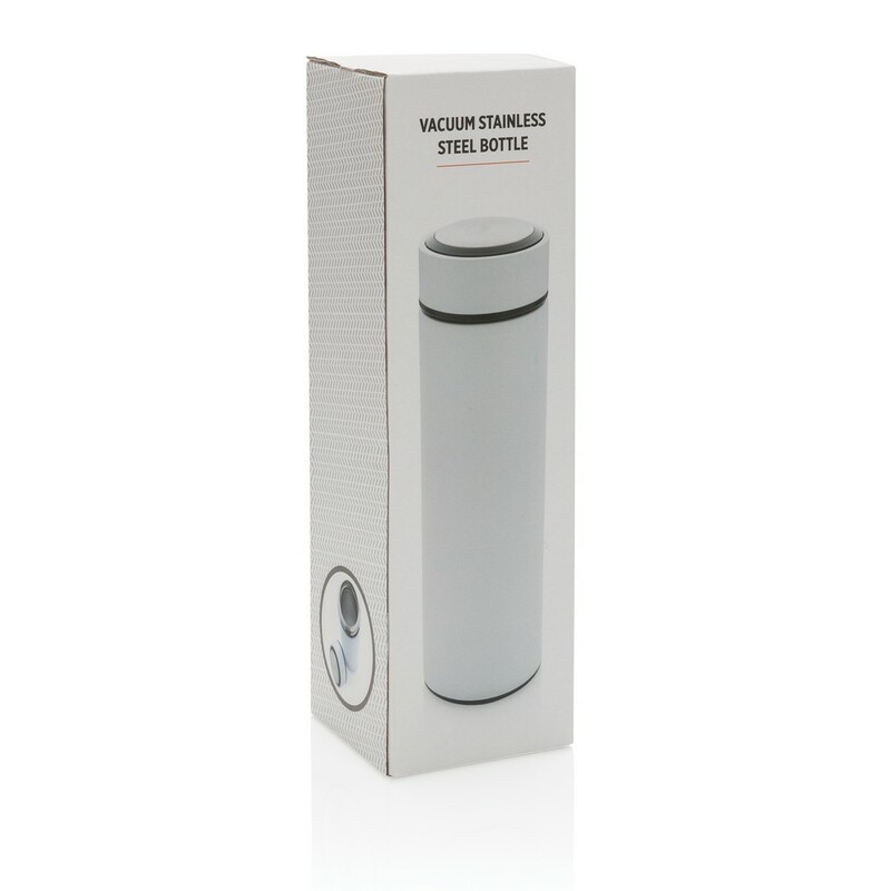 Butelka termiczna 450 ml, podwójne ścianki ze stali nierdzewnej z próżnią pomiędzy, szczelna zakrętka ze stali szczotkowanej, szeroki otwór ułatwia czyszczenie