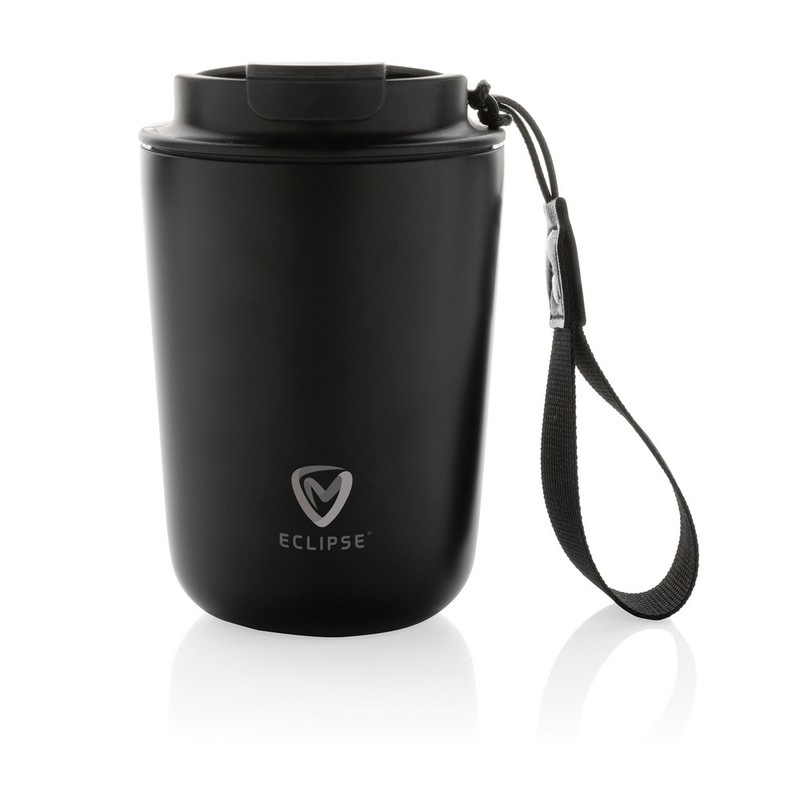 Kubek termiczny 380 ml, szczelny, wykonany ze stali nierdzewnej z recyklingu z certyfikatem RCS, całkowita zawartość materiałów z recyklingu obliczona w oparciu o wagę całkowitą przedmiotu: 74%, ślad węglowy produktu: 1,75 kg CO2