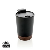 Kubek termiczny 300 ml, podwójne ścianki, wnętrze z PP z recyklingu z certyfikatem GRS, całkowita zawartość materiałów z recyklingu obliczona na podstawie wagi całkowitej produktu: 52%, korkowe elementy na zewnątrz, utrzymuje temperaturę napojów gorących do 4 godzin oraz zimnych do 6 godzin