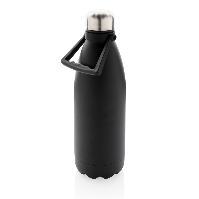 Butelka termiczna 1500 ml z uchwytem, proszkowa powłoka, wykonana ze stali nierdzewnej pochodzącej z recyklingu, całkowita zawartość materiałów z recyklingu obliczona na podstawie wagi całkowitej przedmiotu: 88%, podwójne ścianki z próżnią pomiędzy, w opakowaniu z certyfikatem FSC®, utrzymuje temperaturę napojów gorących do 20 godzin oraz zimnych do 15 godzin