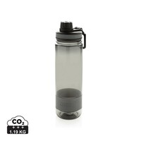 Butelka sportowa 750 ml, wykonana z Tritanu, szczelna, silikonowy pierścień poprawiający wygodę trzymania, ślad węglowy produktu: 1,19 kg CO2