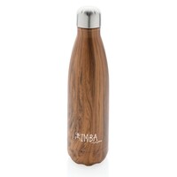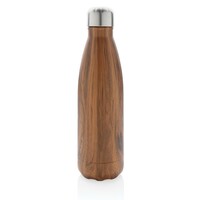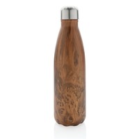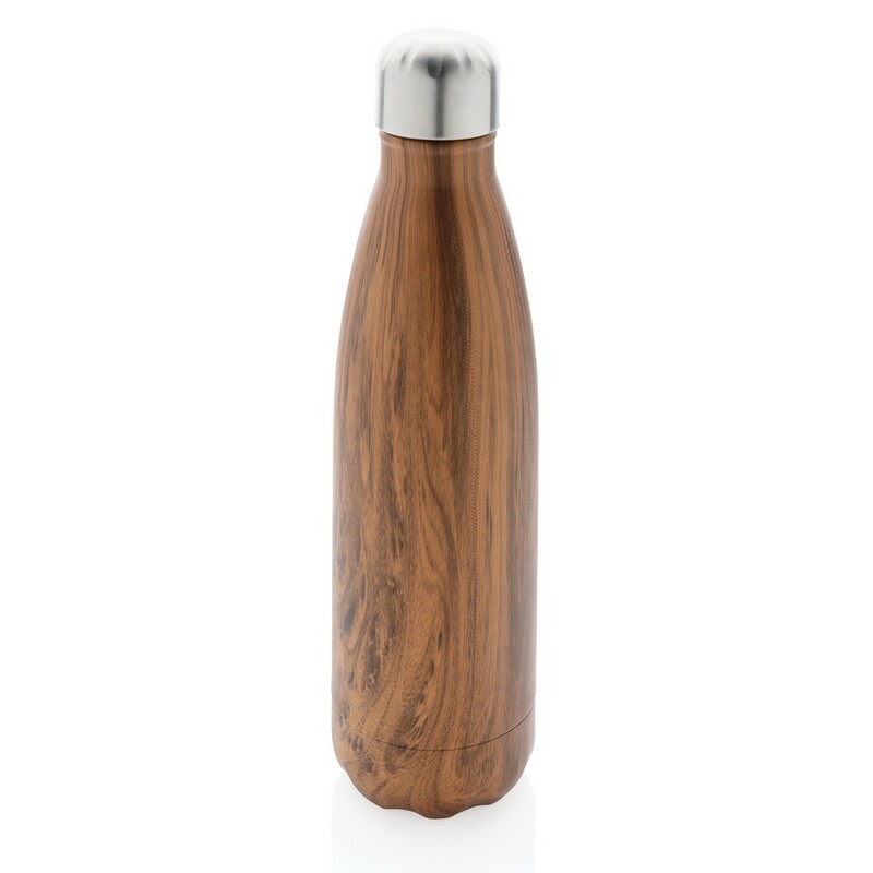 Butelka termiczna 500 ml z nadrukiem drewna, podwójne ścianki ze stali nierdzewnej z próżnią pomiędzy, utrzymuje temperaturę napojów gorących do 20 godzin oraz zimnych do 15 godzin
