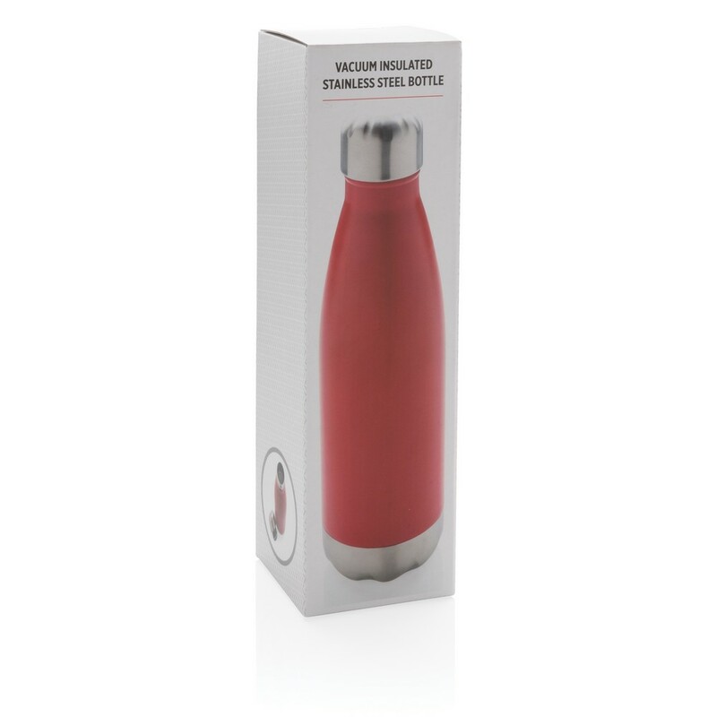 Butelka termiczna 500 ml, podwójne ścianki ze stali nierdzewnej z próżnią pomiędzy, pasuje do większości uchwytów, utrzymuje temperaturę napojów gorących do 5 godzin oraz zimnych do 15 godzin