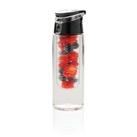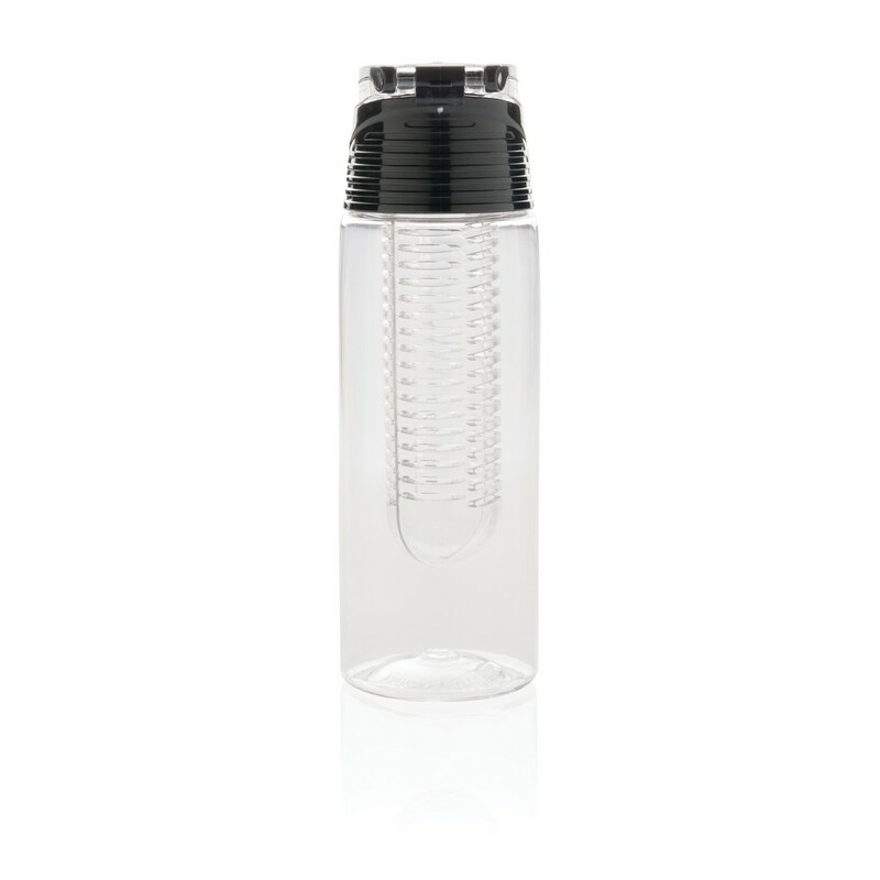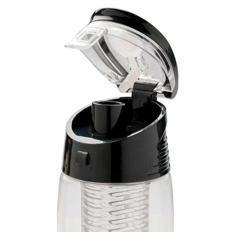 Butelka sportowa 700 ml z pojemnikiem na lód i owoce, szczelne wieczko wykonane z ABS z blokadą i uchwytem, wykonana z odpornego na zadrapania i wytrzymałego Tritanu, nie wymaga obsługi oburącz, ślad węglowy produktu: 1,37 kg CO2