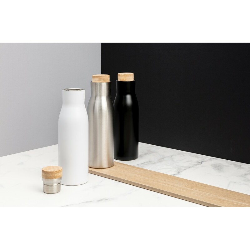Butelka termiczna 500 ml, podwójne ścianki ze stali nierdzewnej z próżnią pomiędzy, szczelna, stalowa zakrętka, utrzymuje temperaturę napojów ciepłych do 5 godzin oraz zimnych do 15 godzin, ślad węglowy produktu: 3,13 kg CO2