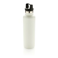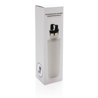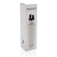 Butelka termiczna 600 ml, proszkowa powłoka, podwójne ścianki, zakrętka 2 w 1 z wyjmowanym sitkiem do zaparzania herbaty lub dodawania do wody owoców i ziół, ustnik do sączenia napojów i dodawania kostek lodu, wewnątrz stal nierdzewna 304, stal nierdzewna 201 na zewnątrz, utrzymuje temperaturę napojów gorących do 20 godzin oraz zimnych do 15 godzin