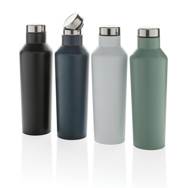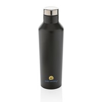 Butelka termiczna 500 ml, podwójne ścianki ze stali nierdzewnej z próżnią pomiędzy, szczelna stalowa zakrętka, utrzymuje temperaturę napojów gorących do 20 godzin oraz zimnych do 15 godzin