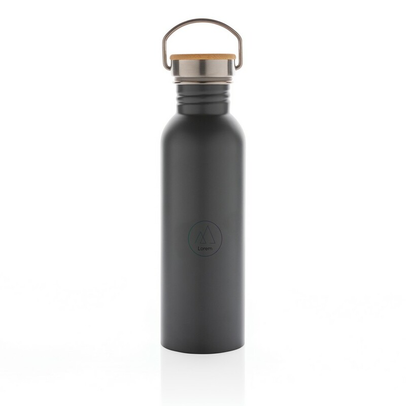 Butelka sportowa 700 ml, wykonana ze stali nierdzewnej, zakrętka z bambusa i stali nierdzewnej, z uchwytem, wyłącznie mycie ręczne, ślad węglowy produktu: 2,03 kg CO2