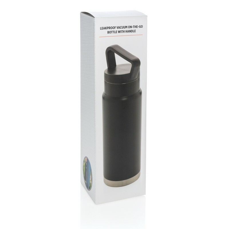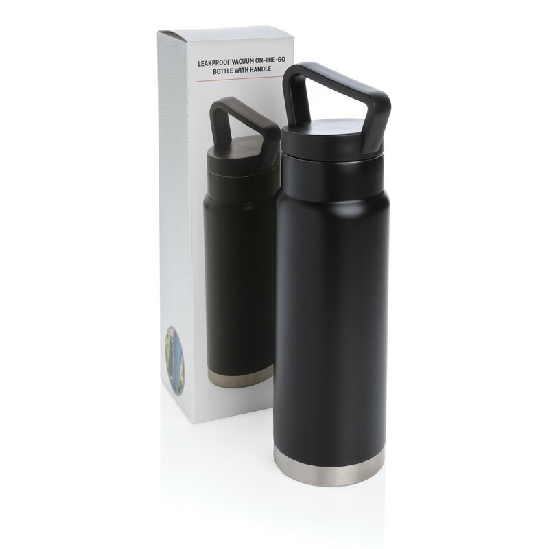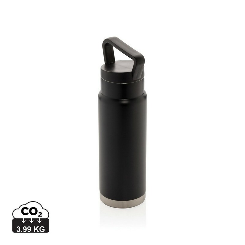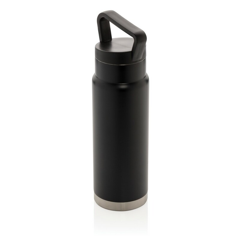 Butelka termiczna 650 ml, podwójne ścianki ze stali nierdzewnej z próżnią pomiędzy, zakrętka z uchwytem, utrzymuje temperaturę napojów gorących do 20 godzin oraz zimnych do 15 godzin