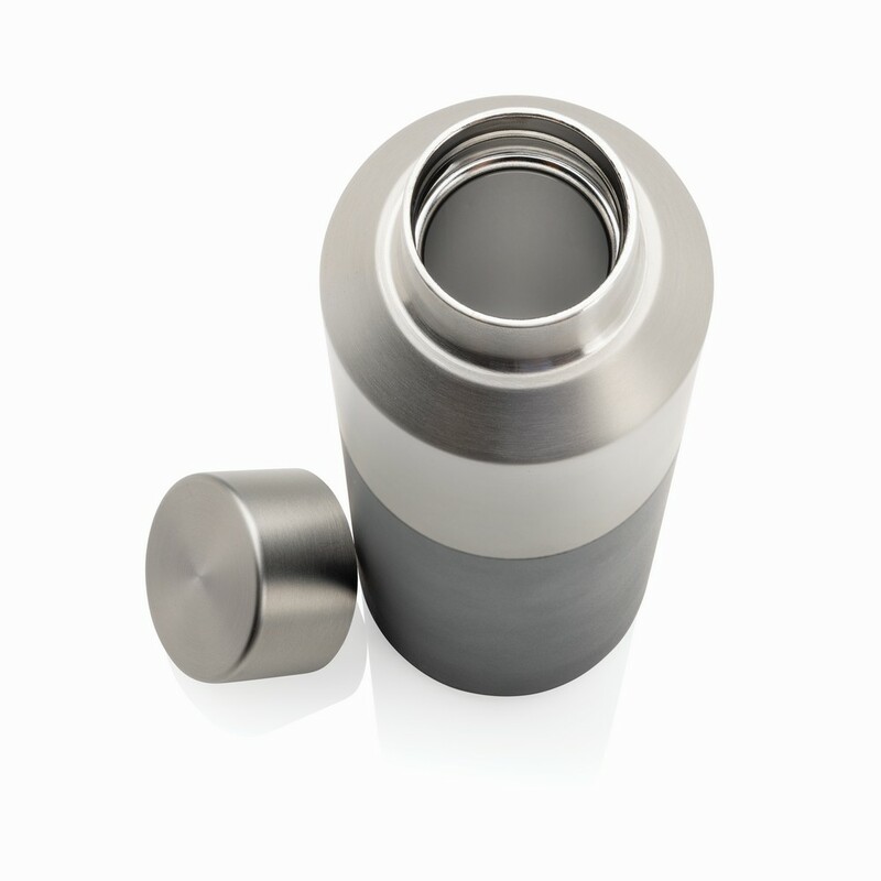 Butelka termiczna 600 ml, wykonana z materiałów z recyklingu z certyfikatem RCS, podwójne ścianki ze stali nierdzewnej z próżnią pomiędzy, utrzymuje temperaturę napojów gorących do 5 godzin i zimnych do 15 godzin