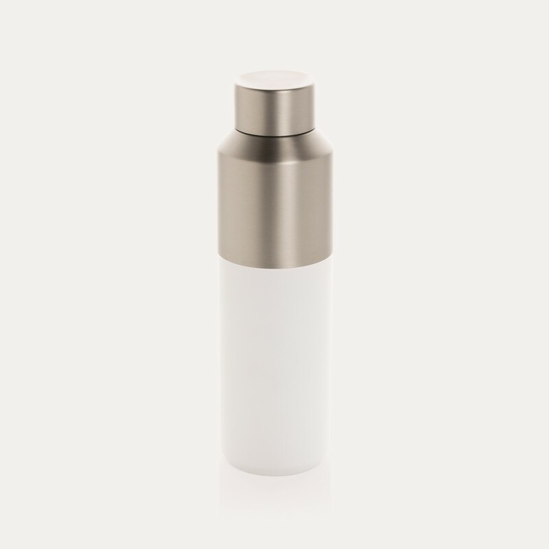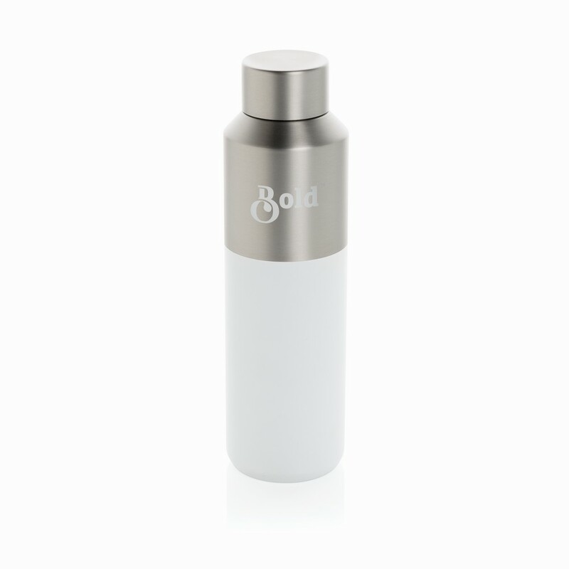 Butelka termiczna 600 ml, wykonana z materiałów z recyklingu z certyfikatem RCS, podwójne ścianki ze stali nierdzewnej z próżnią pomiędzy, utrzymuje temperaturę napojów gorących do 5 godzin i zimnych do 15 godzin