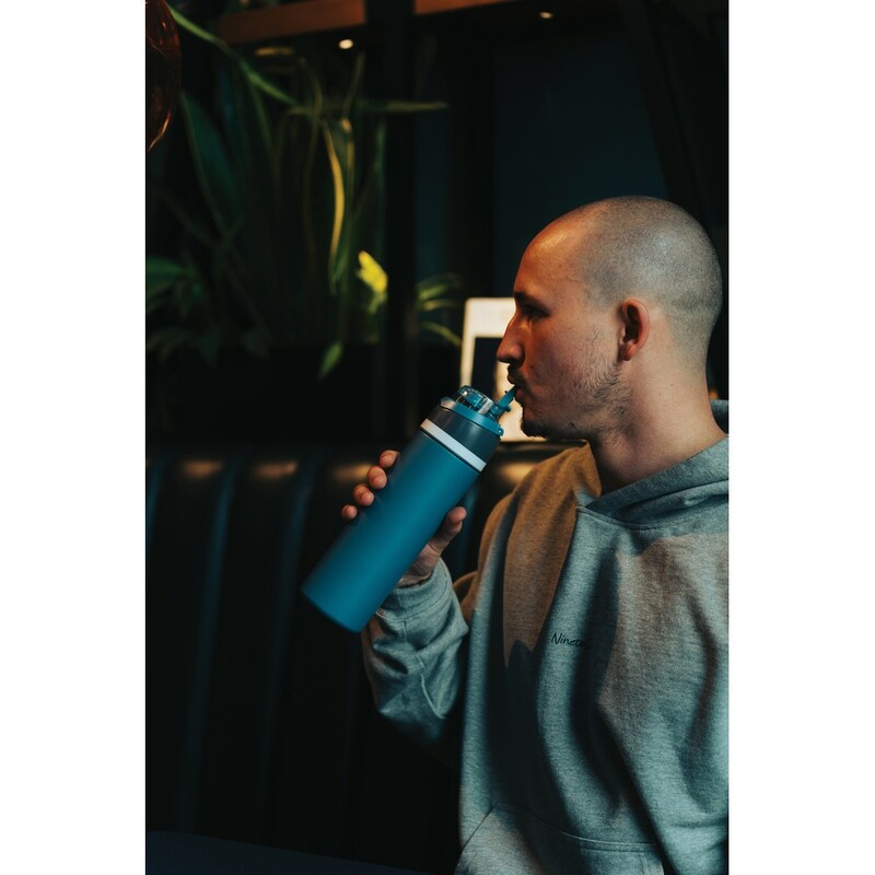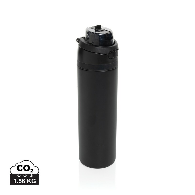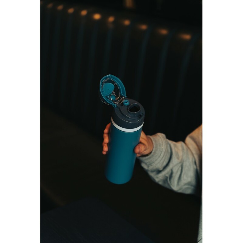Butelka sportowa 700 ml, posiada wbudowaną słomkę, produkt wykonany ze stali pochodzącej z recyklingu z certyfikatem RCS, zapakowana w pudełko upominkowe FSC