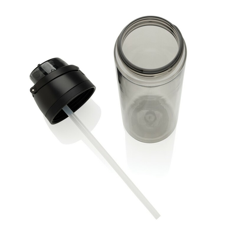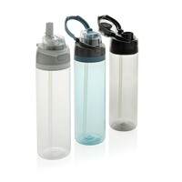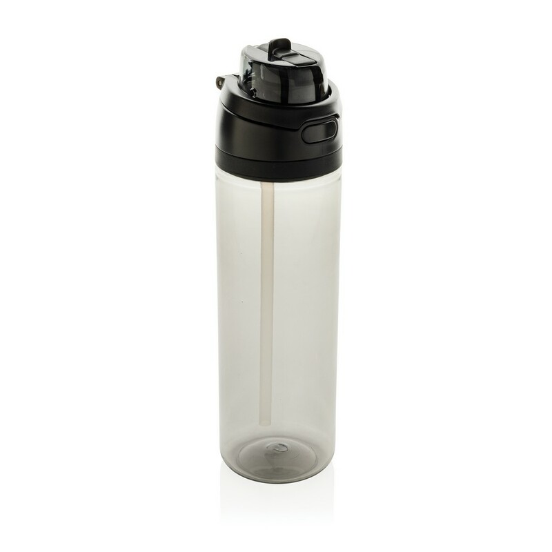Butelka sportowa 800 ml, posiada słomkę i szeroki otwór do picia, wieczko z blokadą, uchwyt, wykonana z RPET, całkowita zawartość materiałów z recyklingu obliczona na podstawie wagi całkowitej produktu: 47%