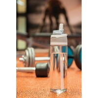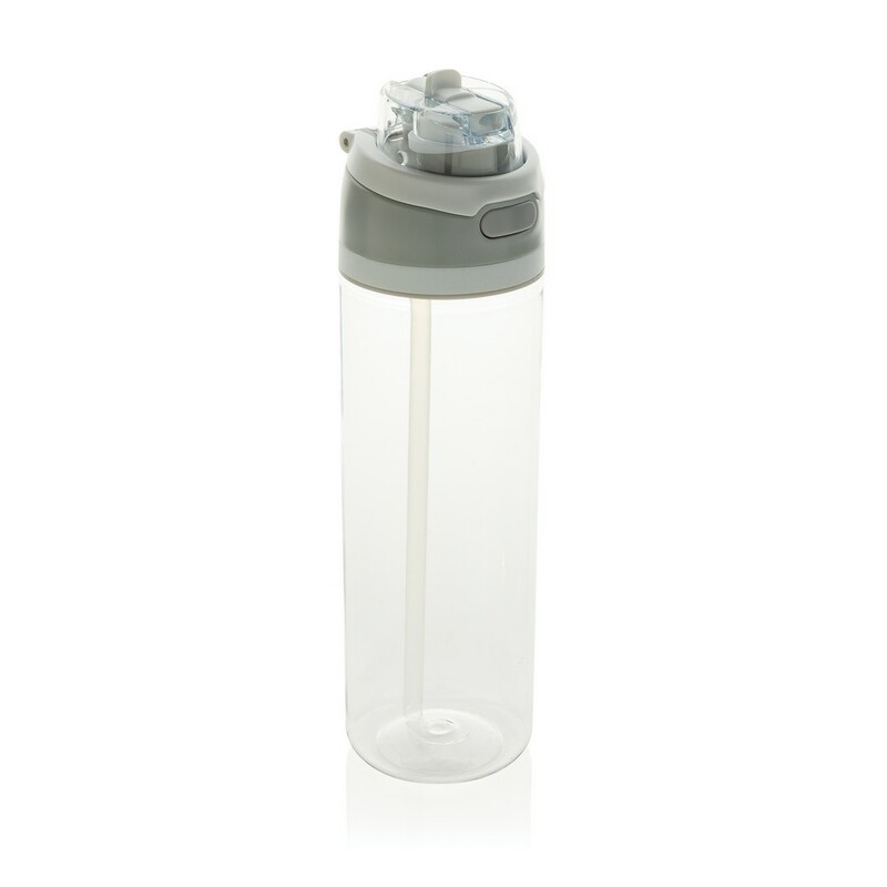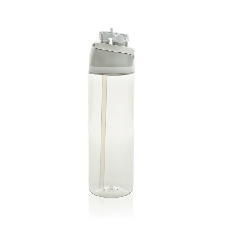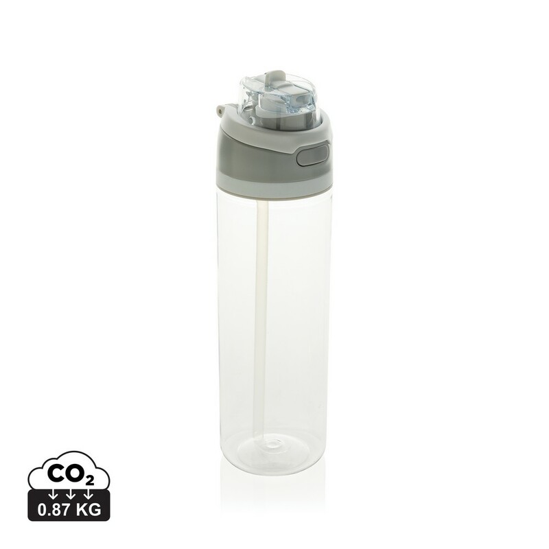 Butelka sportowa 800 ml, posiada słomkę i szeroki otwór do picia, wieczko z blokadą, uchwyt, wykonana z RPET, całkowita zawartość materiałów z recyklingu obliczona na podstawie wagi całkowitej produktu: 47%