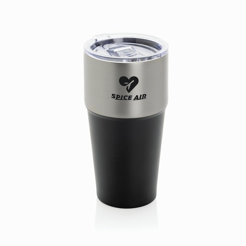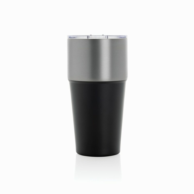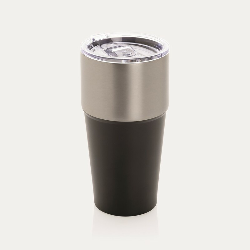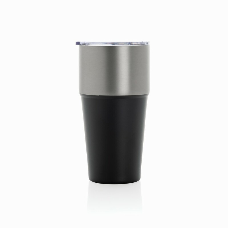 Kubek termiczny 500 ml, wykonany z materiałów z recyklingu z certyfikatem RCS, podwójne ścianki z próżnią pomiędzy, utrzymuje temperaturę napojów ciepłych do 5 godzin i zimnych do 15 godzin, wyłącznie mycie ręczne, całkowita zawartość materiałów z recyklingu obliczona na podstawie wagi całkowitej produktu: 81%