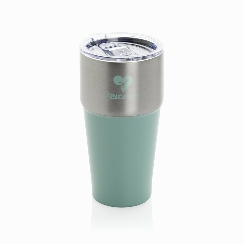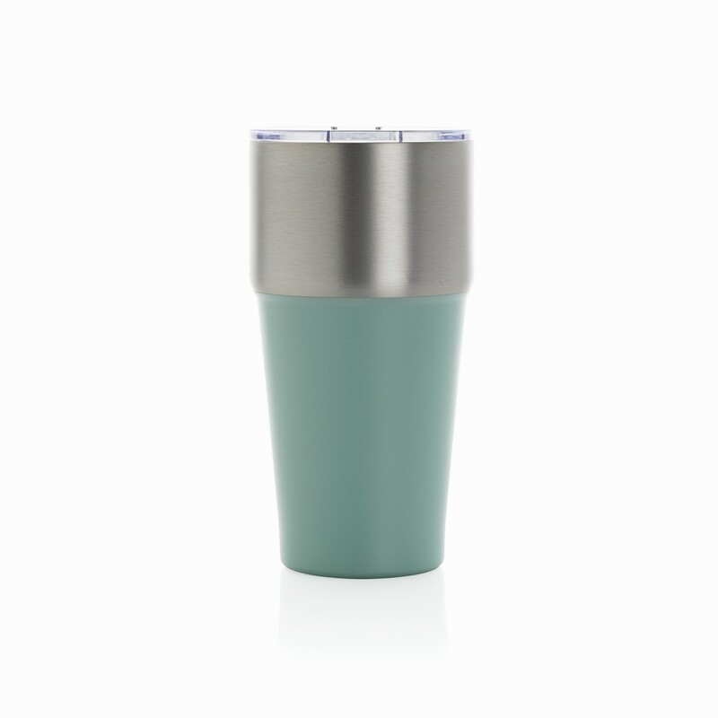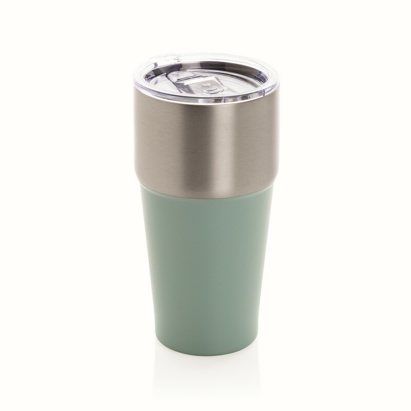 Kubek termiczny 500 ml, wykonany z materiałów z recyklingu z certyfikatem RCS, podwójne ścianki z próżnią pomiędzy, utrzymuje temperaturę napojów ciepłych do 5 godzin i zimnych do 15 godzin, wyłącznie mycie ręczne, całkowita zawartość materiałów z recyklingu obliczona na podstawie wagi całkowitej produktu: 81%