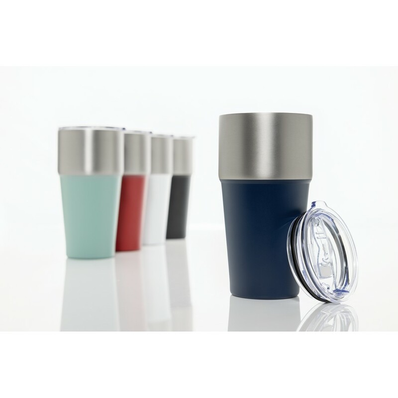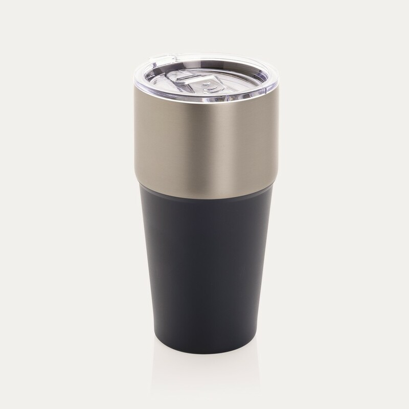 Kubek termiczny 500 ml, wykonany z materiałów z recyklingu z certyfikatem RCS, podwójne ścianki z próżnią pomiędzy, utrzymuje temperaturę napojów ciepłych do 5 godzin i zimnych do 15 godzin, wyłącznie mycie ręczne, całkowita zawartość materiałów z recyklingu obliczona na podstawie wagi całkowitej produktu: 81%