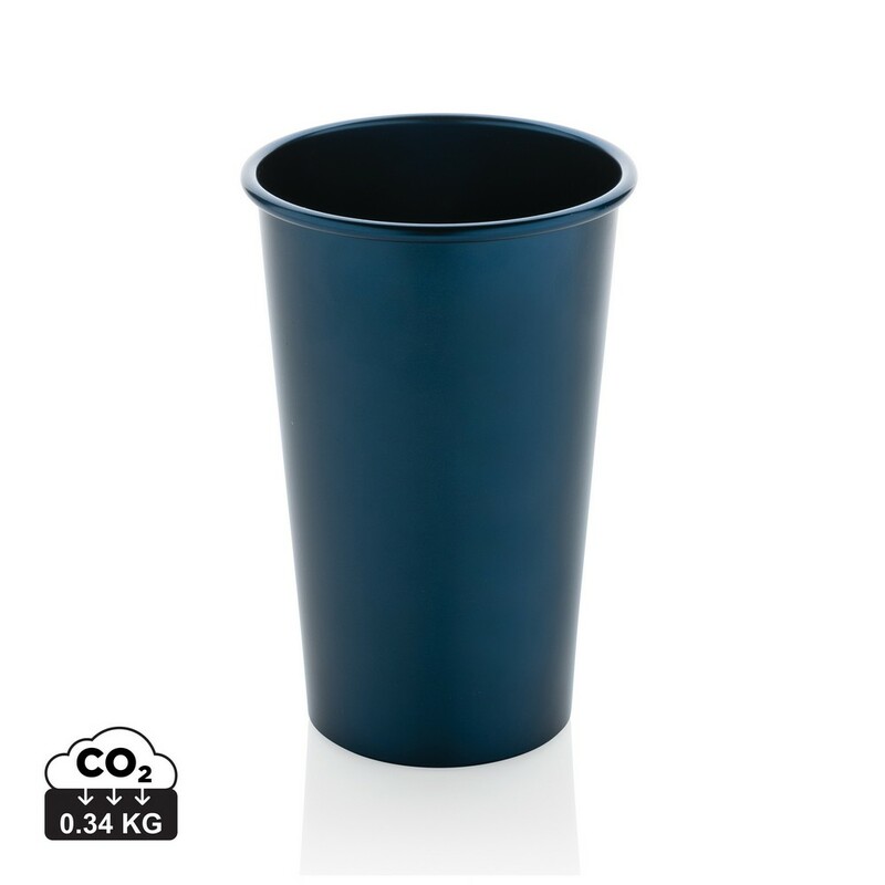 Kubek podróżny 450 ml, lekka konstrukcja, wykonany z aluminium z recyklingu z certyfikatem RCS, całkowita zawartość materiałów obliczona na podstawie wagi całkowitej przedmiotu: 65%, zalecany do zimnych napojów, wyłącznie mycie ręczne, ślad węglowy produktu: 0,34 kg CO2