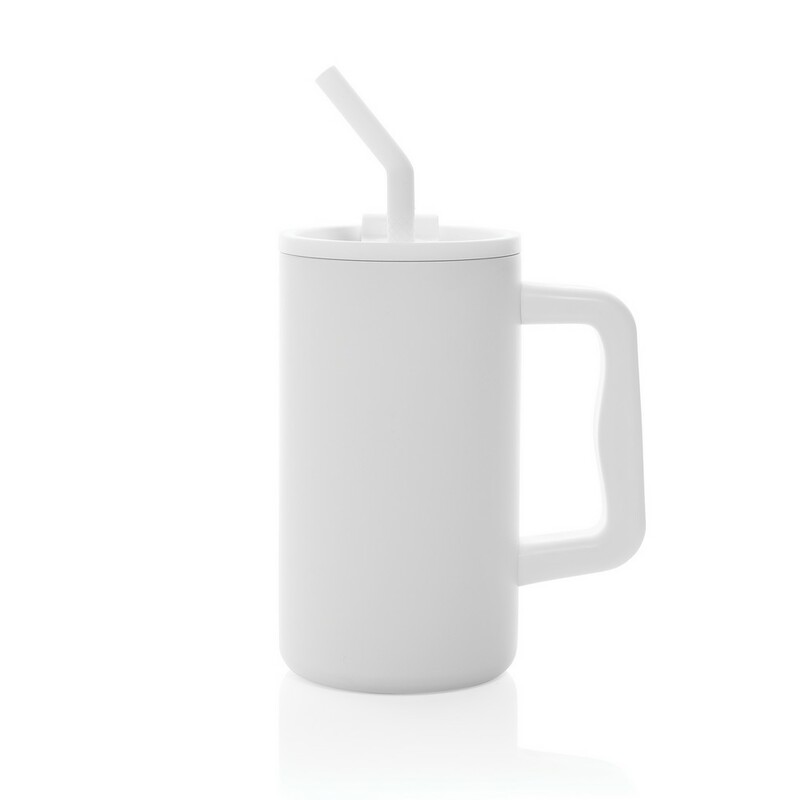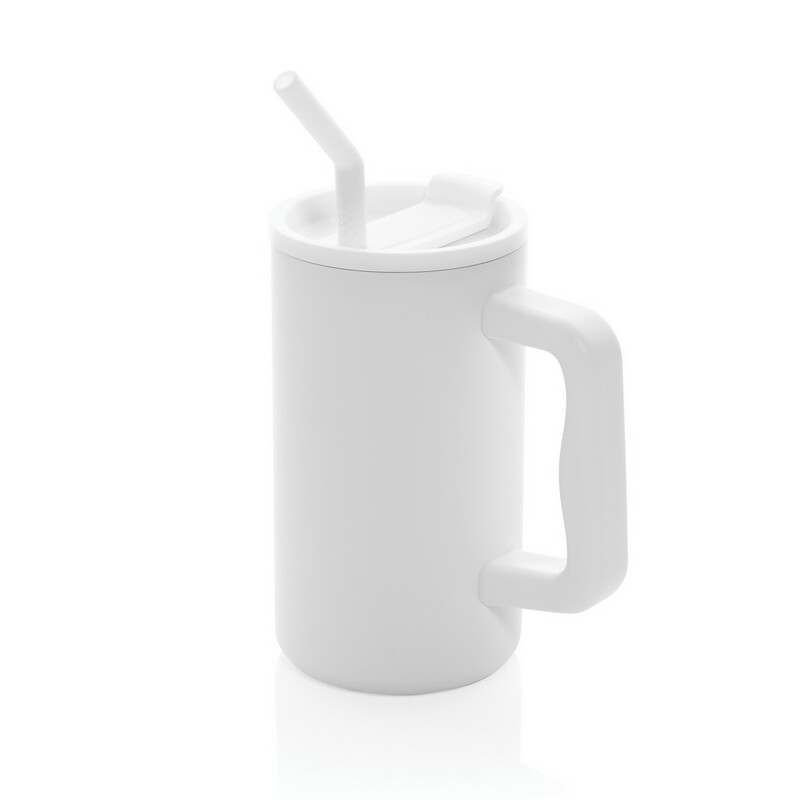 Kubek termiczny 800 ml, posiada słomkę z silikonową nakładką, zakręcane wieczko, wykonany ze stali nierdzewnej z recyklingu, podwójne ścianki ze stali nierdzewnej z próżnią między ściankami, dzięki czemu zachowuje funkcje termosu i długo utrzymuje temperaturę nie oddając jej na zewnątrz, zalecane mycie ręczne