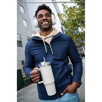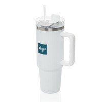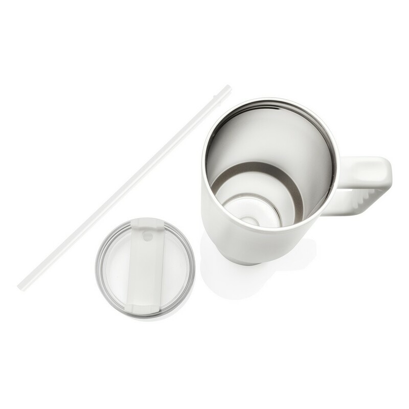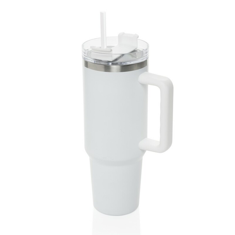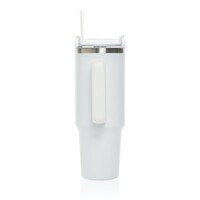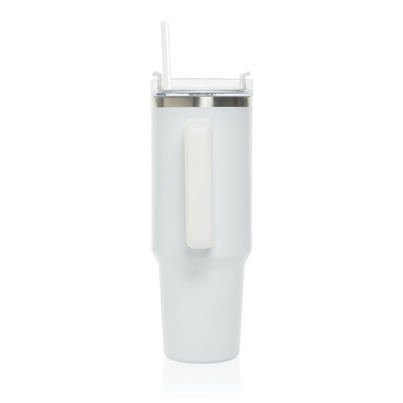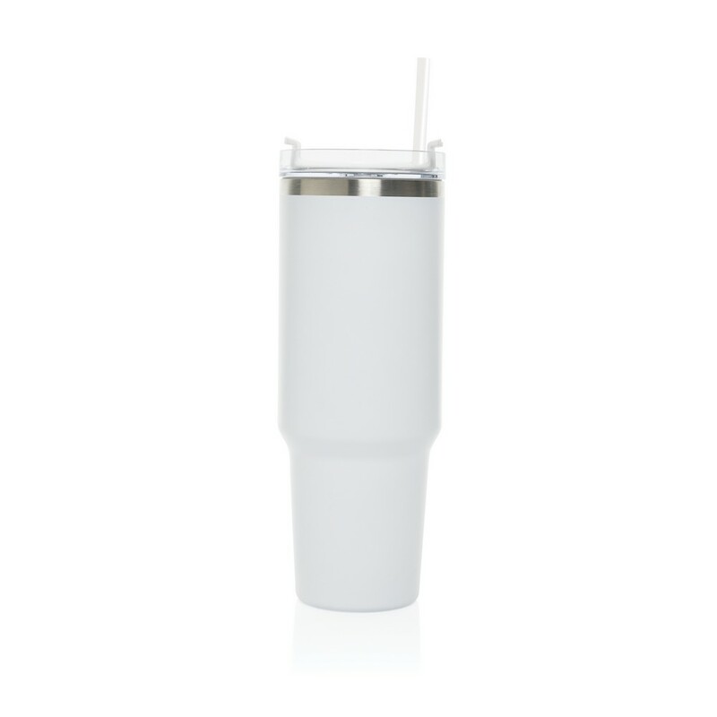 Kubek termiczny 1200 ml, podwójne ścianki z próżnią pomiędzy dzięki czemu kubek posiada funkcję termosu, posiada słomkę i szeroki otwór do picia, wykonany z materiałów z recyklingu, całkowita zawartość materiałów z recyklingu obliczona na podstawie wagi całkowitej produktu: 29%
