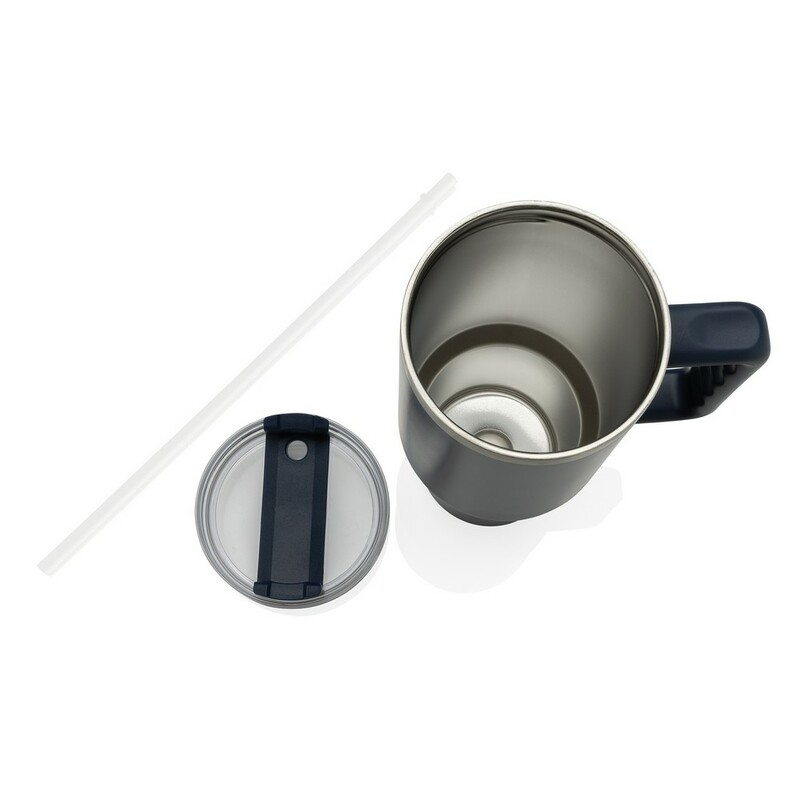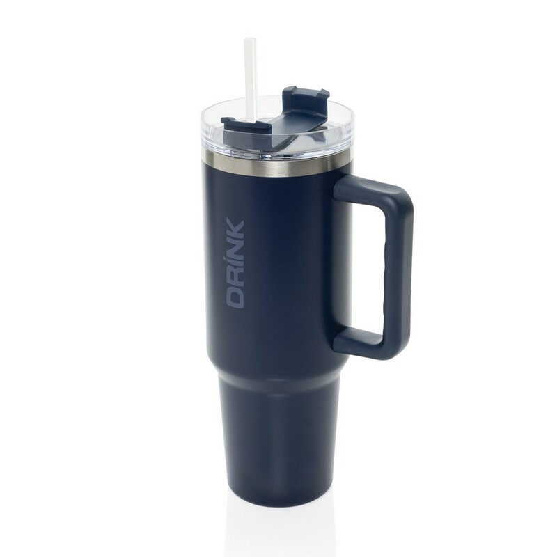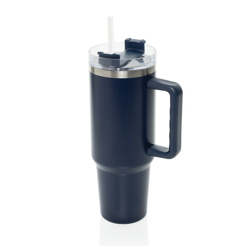 Kubek termiczny 1200 ml, podwójne ścianki z próżnią pomiędzy dzięki czemu kubek posiada funkcję termosu, posiada słomkę i szeroki otwór do picia, wykonany z materiałów z recyklingu, całkowita zawartość materiałów z recyklingu obliczona na podstawie wagi całkowitej produktu: 29%