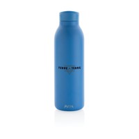 Butelka termiczna 500 ml, podwójne ścianki ze stali nierdzewnej z recyklingu z próżnią pomiędzy, zawartość materiałów z recyklingu obliczona na podstawie wagi całkowitej przedmiotu: 97%, utrzymuje temperaturę napojów ciepłych do 10 godzin oraz zimnych do 20 godzin, pasuje do większości uchwytów samochodowych, w pudełku z certyfikatem FSC®, klasa termiczna: A, ślad węglowy produktu: 1,35 kg CO2
