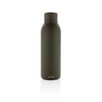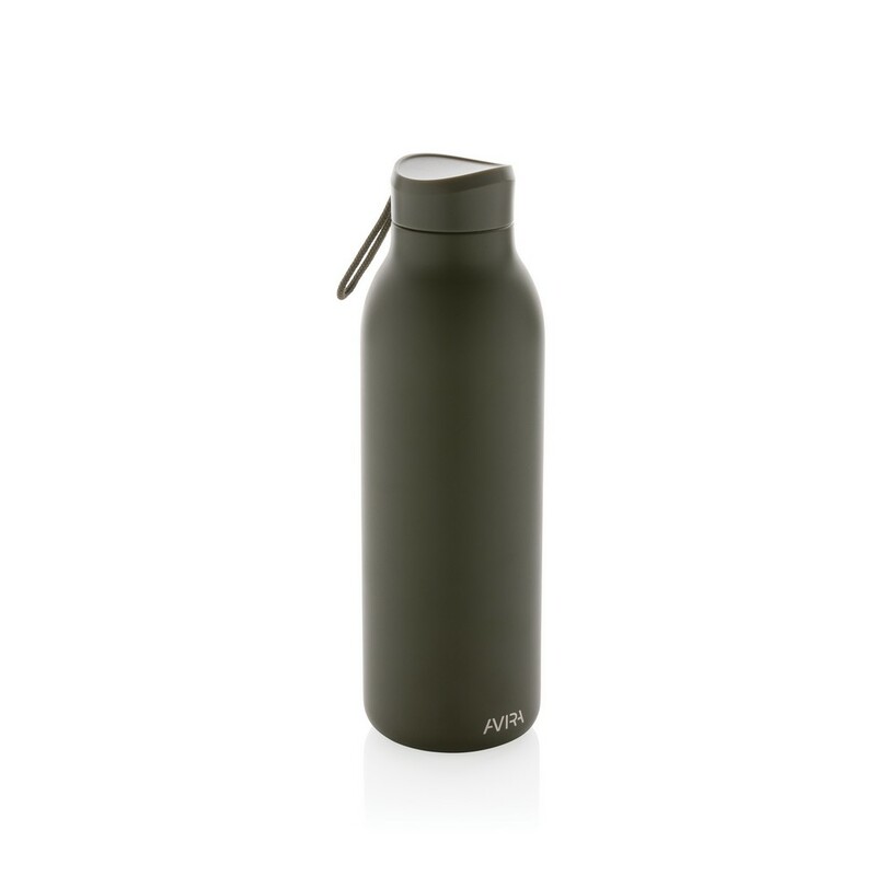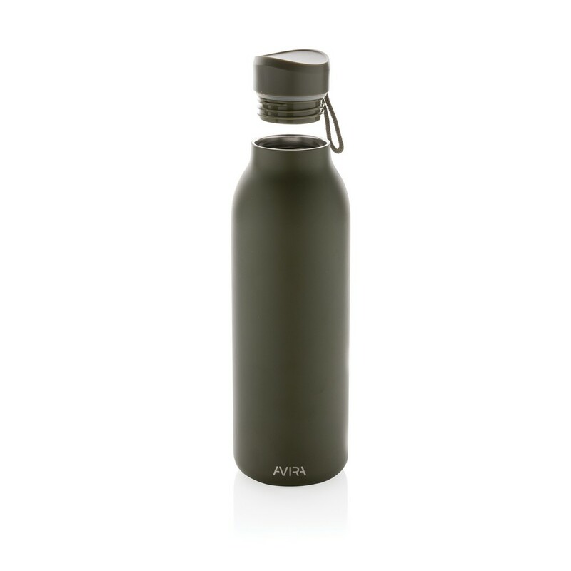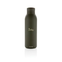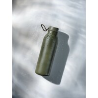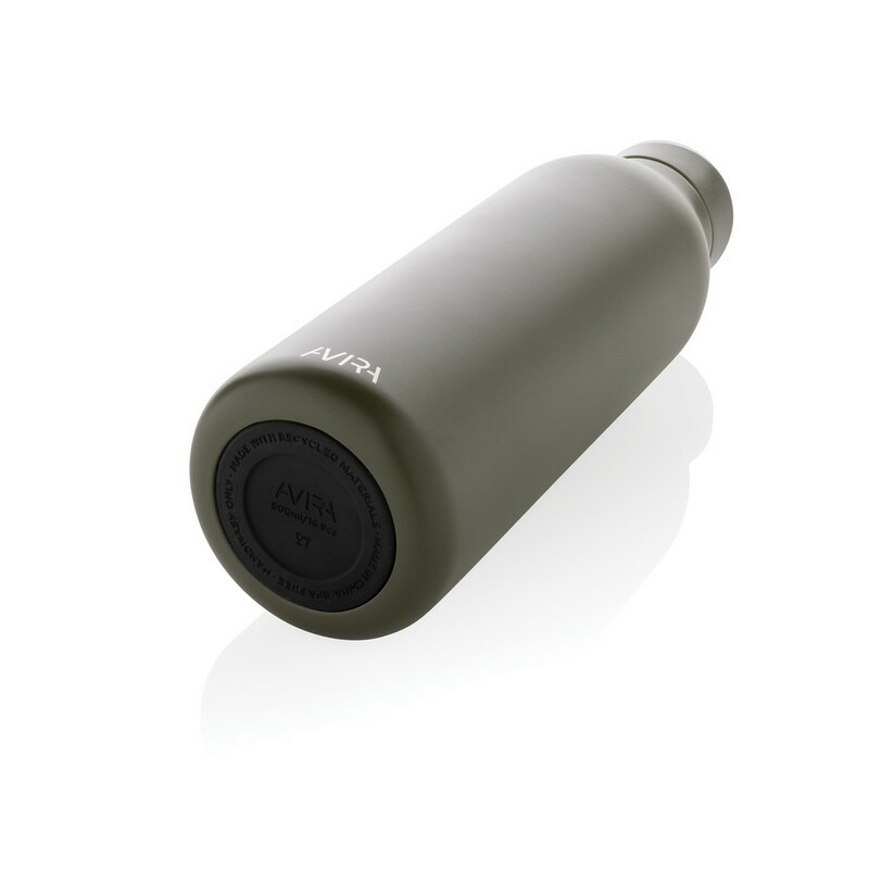 Butelka termiczna 500 ml, podwójne ścianki ze stali nierdzewnej z recyklingu z próżnią pomiędzy, zawartość materiałów z recyklingu obliczona na podstawie wagi całkowitej przedmiotu: 97%, utrzymuje temperaturę napojów ciepłych do 10 godzin oraz zimnych do 20 godzin, pasuje do większości uchwytów samochodowych, w pudełku z certyfikatem FSC®, ślad węglowy produktu: 1,35 kg CO2