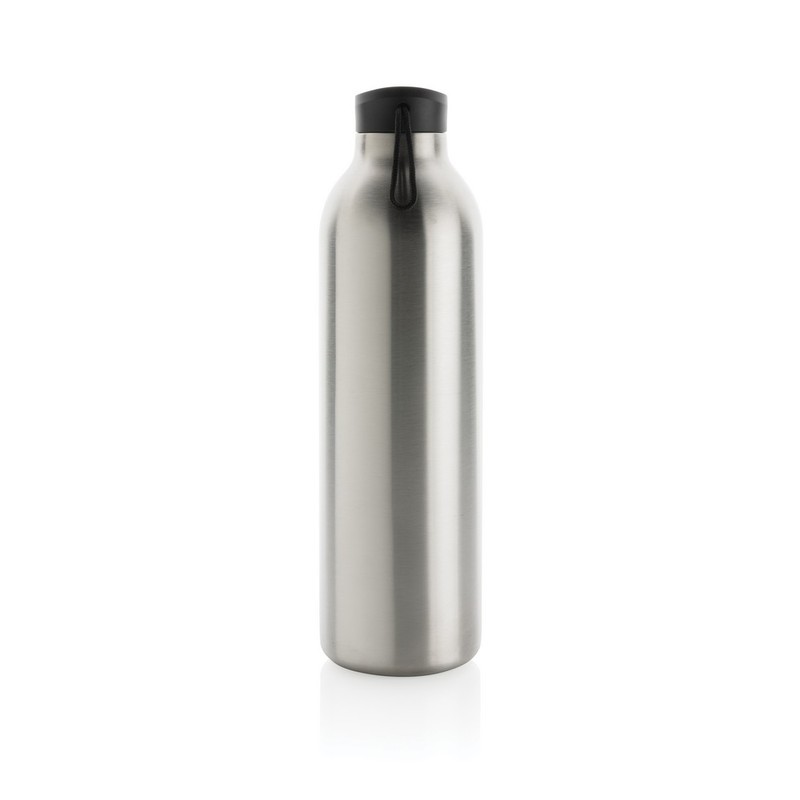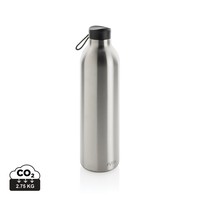 Butelka termiczna 1000 ml, wykonana ze stali nierdzewnej pochodzącej z recyklingu, całkowita zawartość materiałów z recyklingu obliczona na podstawie wagi całkowitej przedmiotu: 97%, podwójne ścianki z próżnią pomiędzy, pasuje do większości uchwytów samochodowych, w pudełku z papieru kraftowego z certyfikatem FSC®, pudełko można wykorzystać jako stojak na telefon lub doniczkę, utrzymuje temperaturę napojów gorących do 20 godzin oraz zimnych do 20 godzin