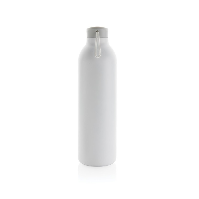 Butelka termiczna 1000 ml, wykonana ze stali nierdzewnej pochodzącej z recyklingu, całkowita zawartość materiałów z recyklingu obliczona na podstawie wagi całkowitej przedmiotu: 97%, podwójne ścianki z próżnią pomiędzy, pasuje do większości uchwytów samochodowych, w pudełku z papieru kraftowego z certyfikatem FSC®, pudełko można wykorzystać jako stojak na telefon lub doniczkę, utrzymuje temperaturę napojów gorących do 20 godzin oraz zimnych do 20 godzin