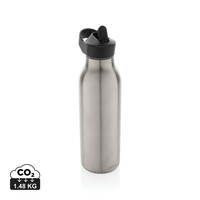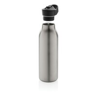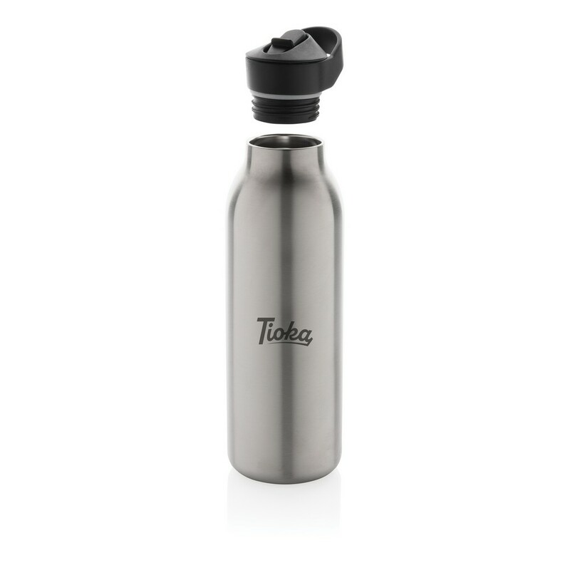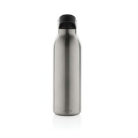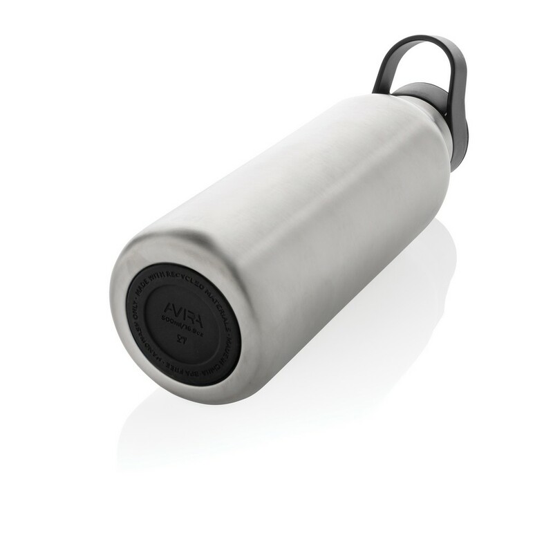 Butelka termiczna 500 ml, wykonana ze stali nierdzewnej pochodzącej z recyklingu, całkowita zawartość materiałów z recyklingu obliczona na podstawie wagi całkowitej przedmiotu: 96%, podwójne ścianki z próżnią pomiędzy, utrzymuje temperaturę napojów zimnych do 20 godzin, pasuje do większości uchwytów samochodowych, w pudełku z papieru kraftowego z certyfikatem FSC®, pudełko można wykorzystać jako stojak na telefon lub doniczkę, w pudełku z papieru kraftowego z certyfikatem FSC®, ślad węglowy produktu: 1,48 kg CO2