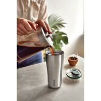 Kubek termiczny 600 ml, podwójne ścianki ze stali nierdzewnej z próżnią pomiędzy, obsługa jedną ręką, szczelne wieczko, utrzymuje temperaturę napojów gorących do 5 godzin oraz zimnych do 8 godzin, wyłącznie mycie ręczne