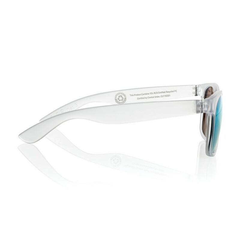 Okulary przeciwsłoneczne z filtrem UV400 i CAT 3, zgodne z normą EN ISO 12312-1, wykonane z PC z recyklingu z certyfikatem RCS, pudełko z kraftowego papieru w komplecie z certyfikatem FSC®, całkowita zawartość materiałów z recyklingu obliczona na podstawie wagi całkowitej produktu: 72%