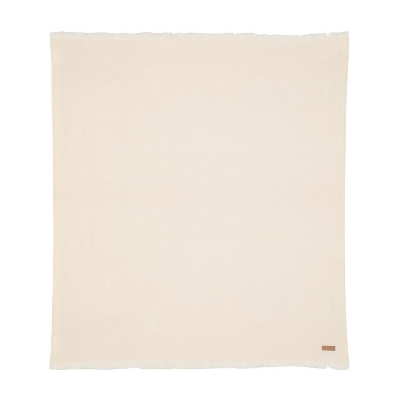 Koc z frędzlami, tkany, wykonany z przędzy Polylana®, która pochodzi z recyklingu, dzięki zastosowaniu technologii AWARE™ wykorzystane materiały są identyfikowalne z pochodzenia, wymiar 130 x150 cm, 2% wpływów z każdego sprzedanego produktu jest przekazywane na rzecz Water.org,
